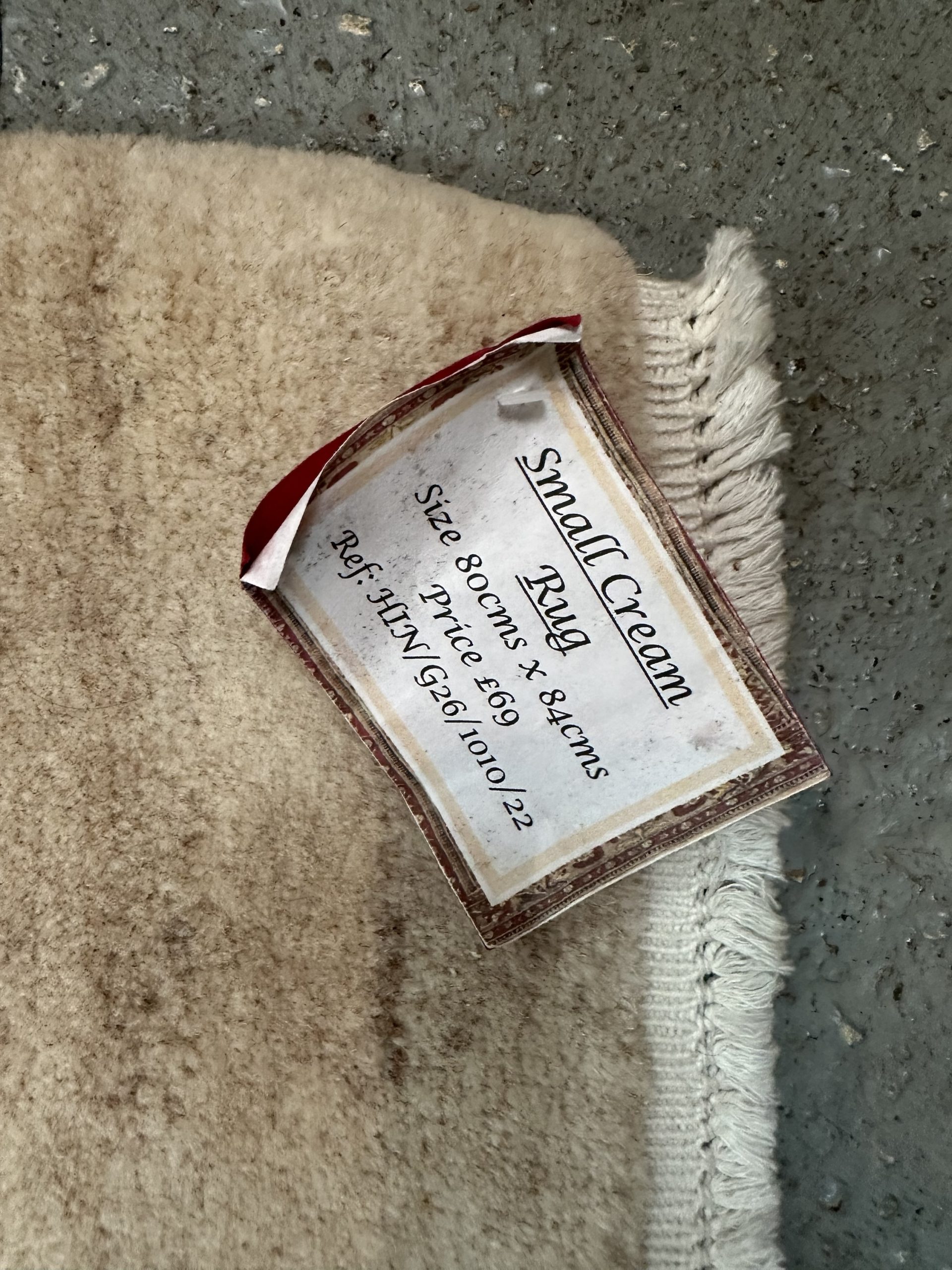 It’s a small cream rug!