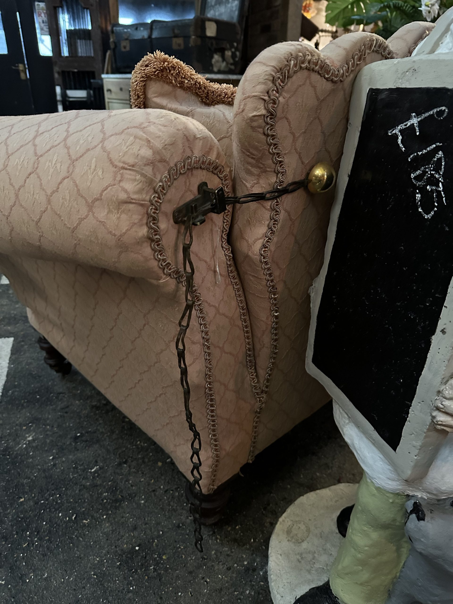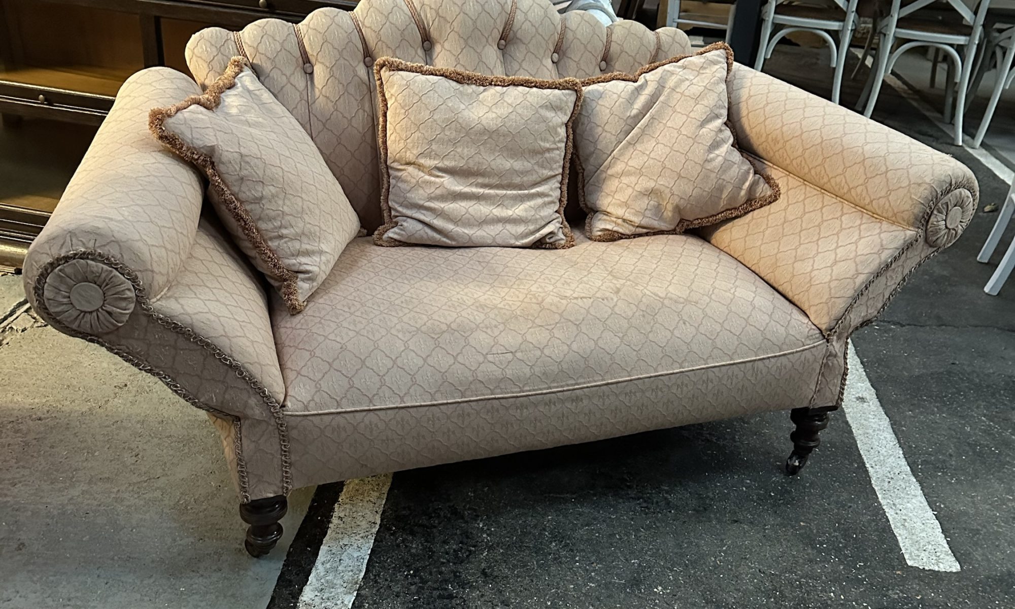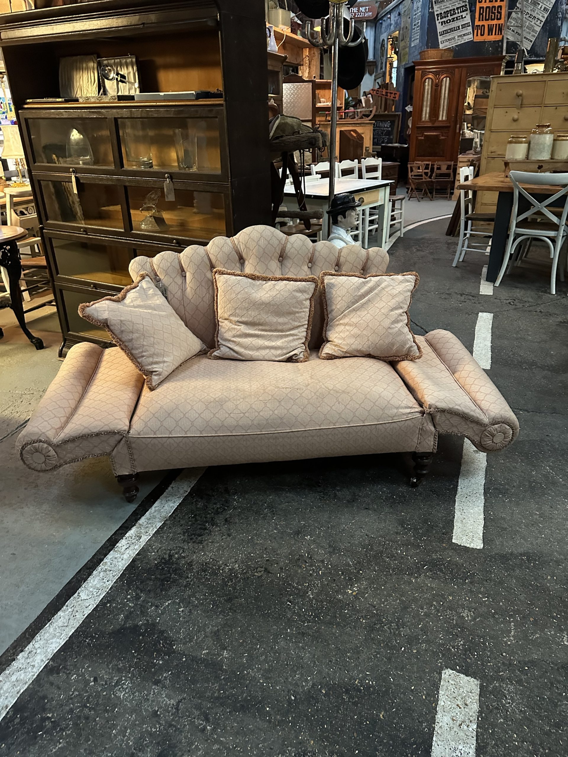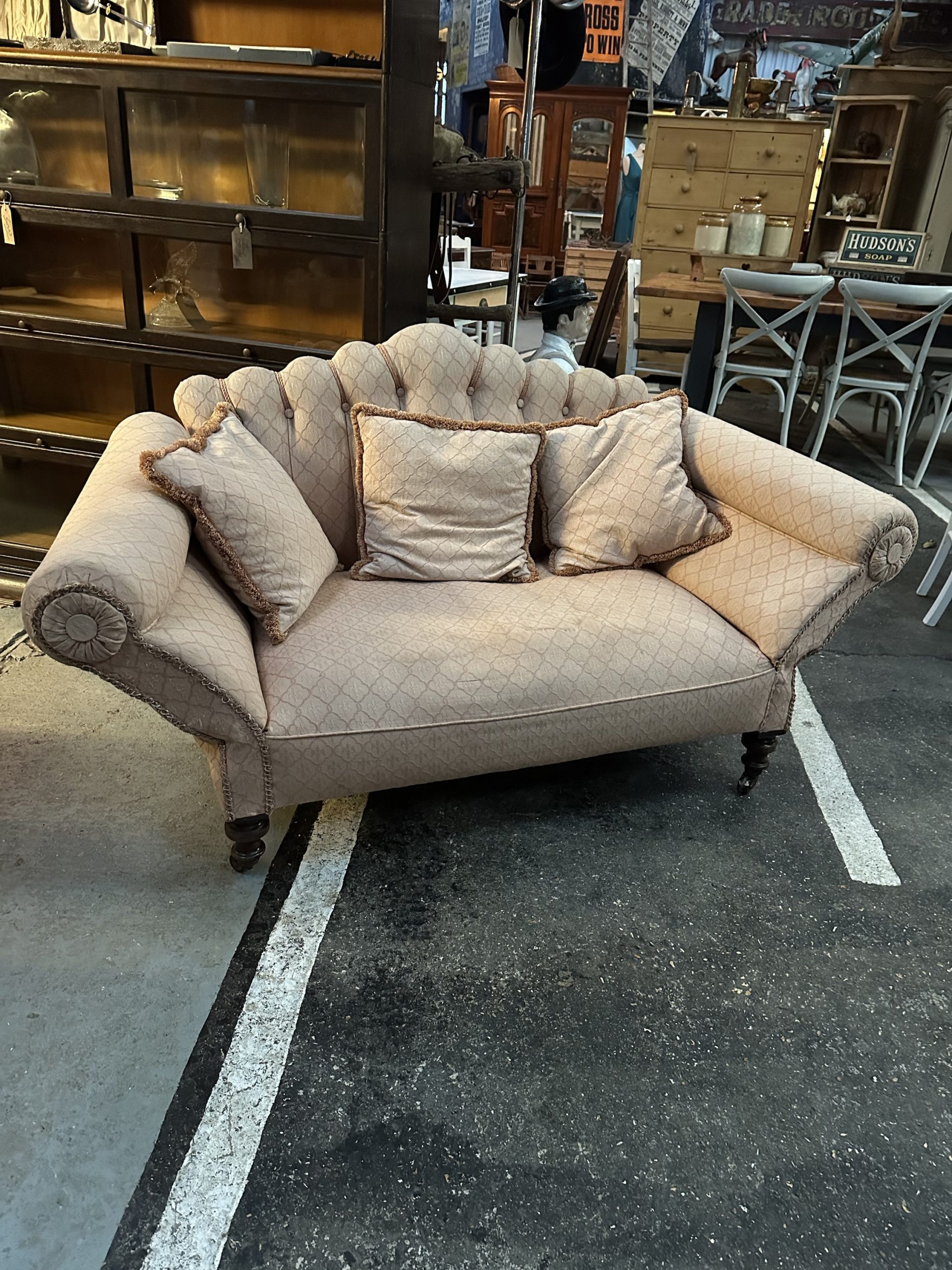 Antique double drop end, shell back two seater sofa. Could ideally do with reupholstering.