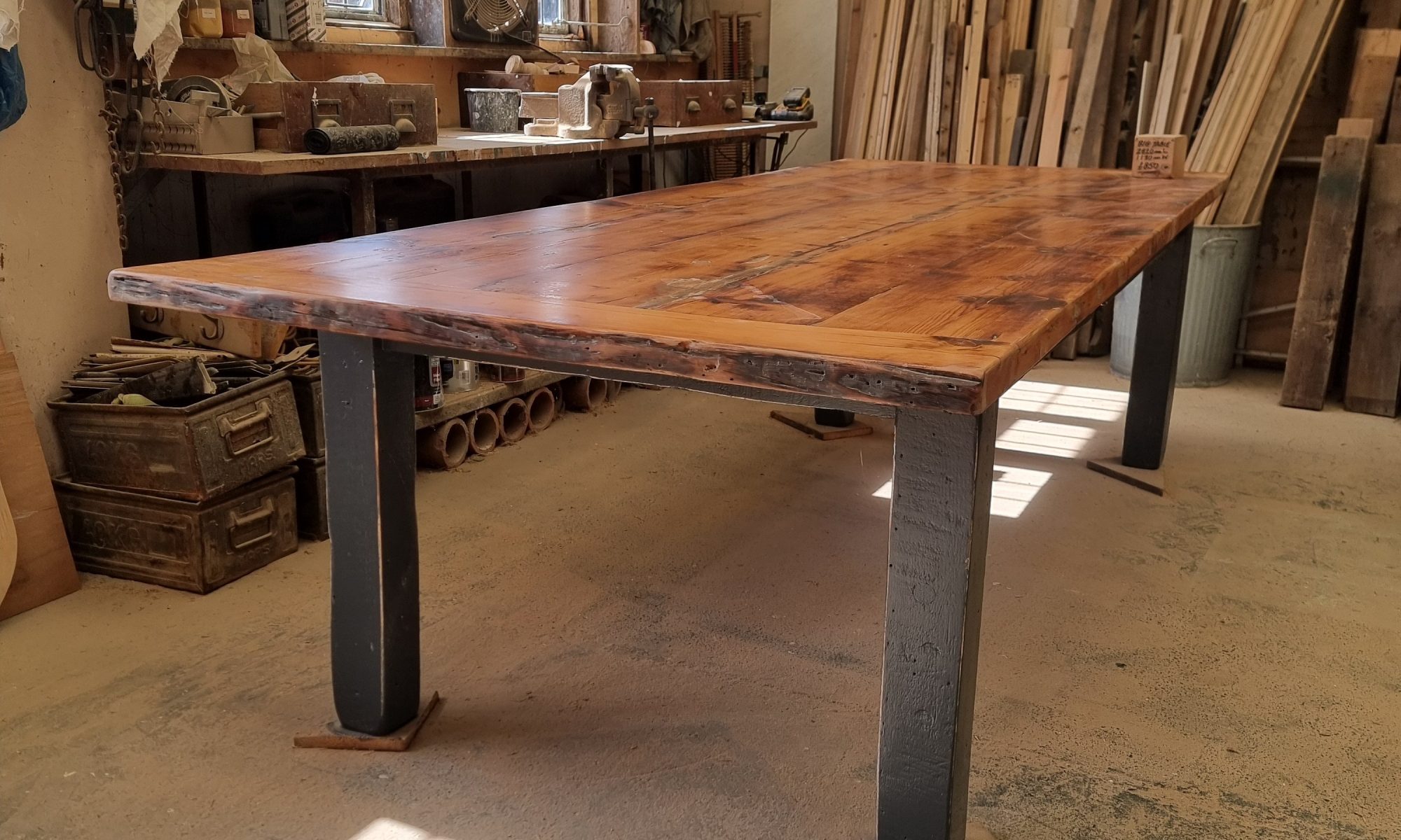 A very large Pine top table, with grey painted legs. seats loads. £850 2820mm x 1130mm x 770mm high H42008