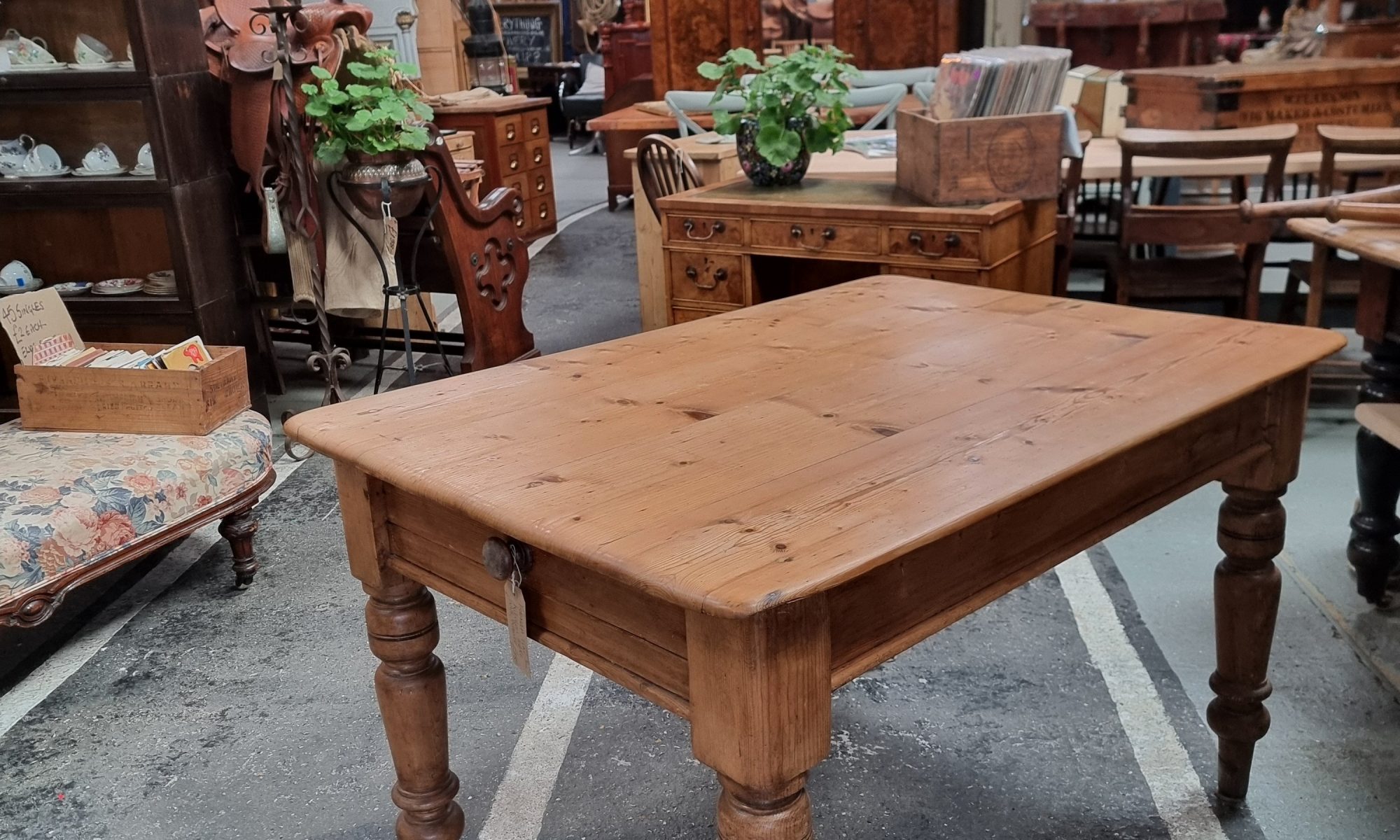 An original Victorian Pine table with turned legs and single drawer. 1220mm 860mm x 740mm high £385 R52108