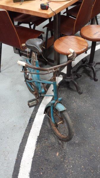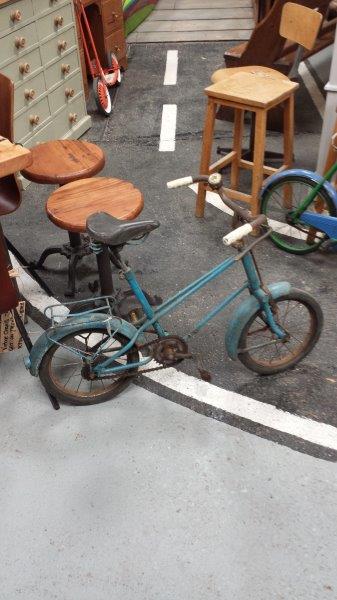 Vintage child’s bike – weighs a ton – solid tyres and no chain guard – ready to chew your corduroy trousers up!