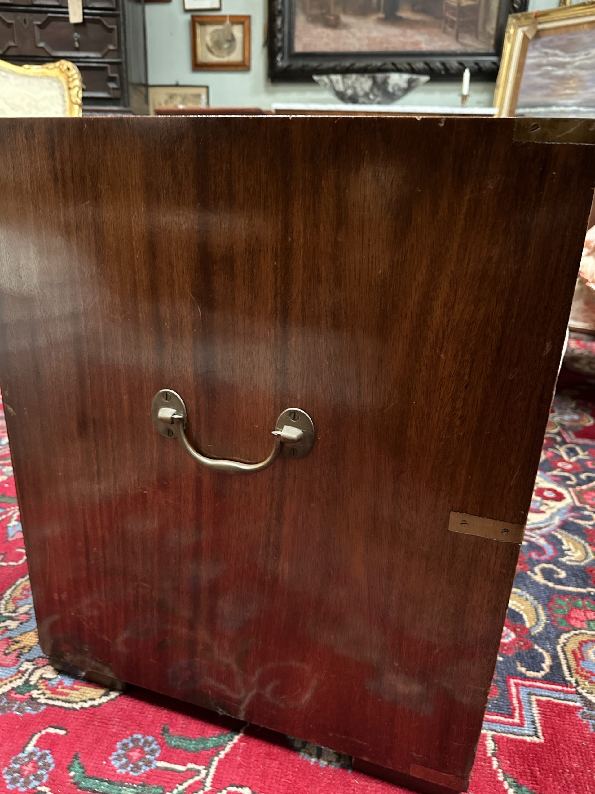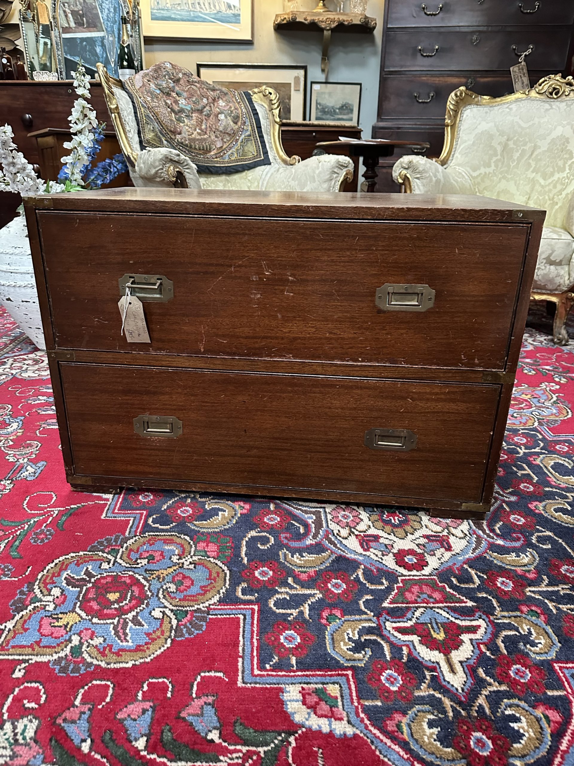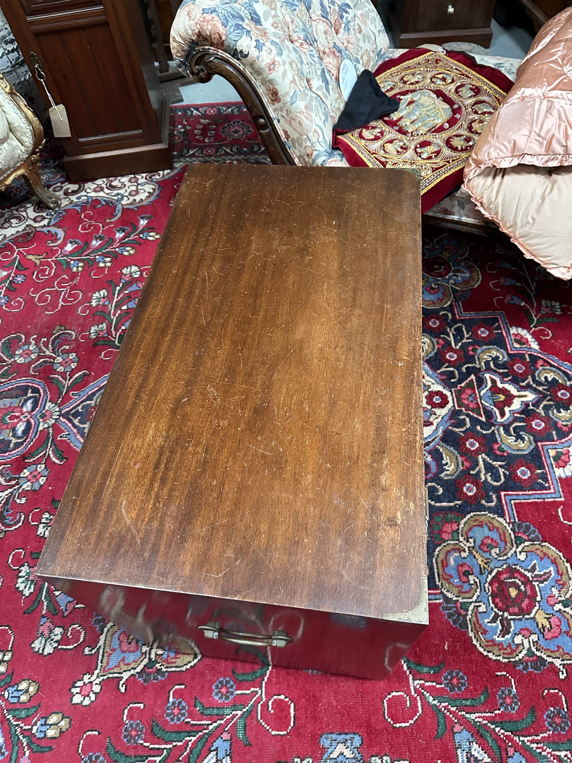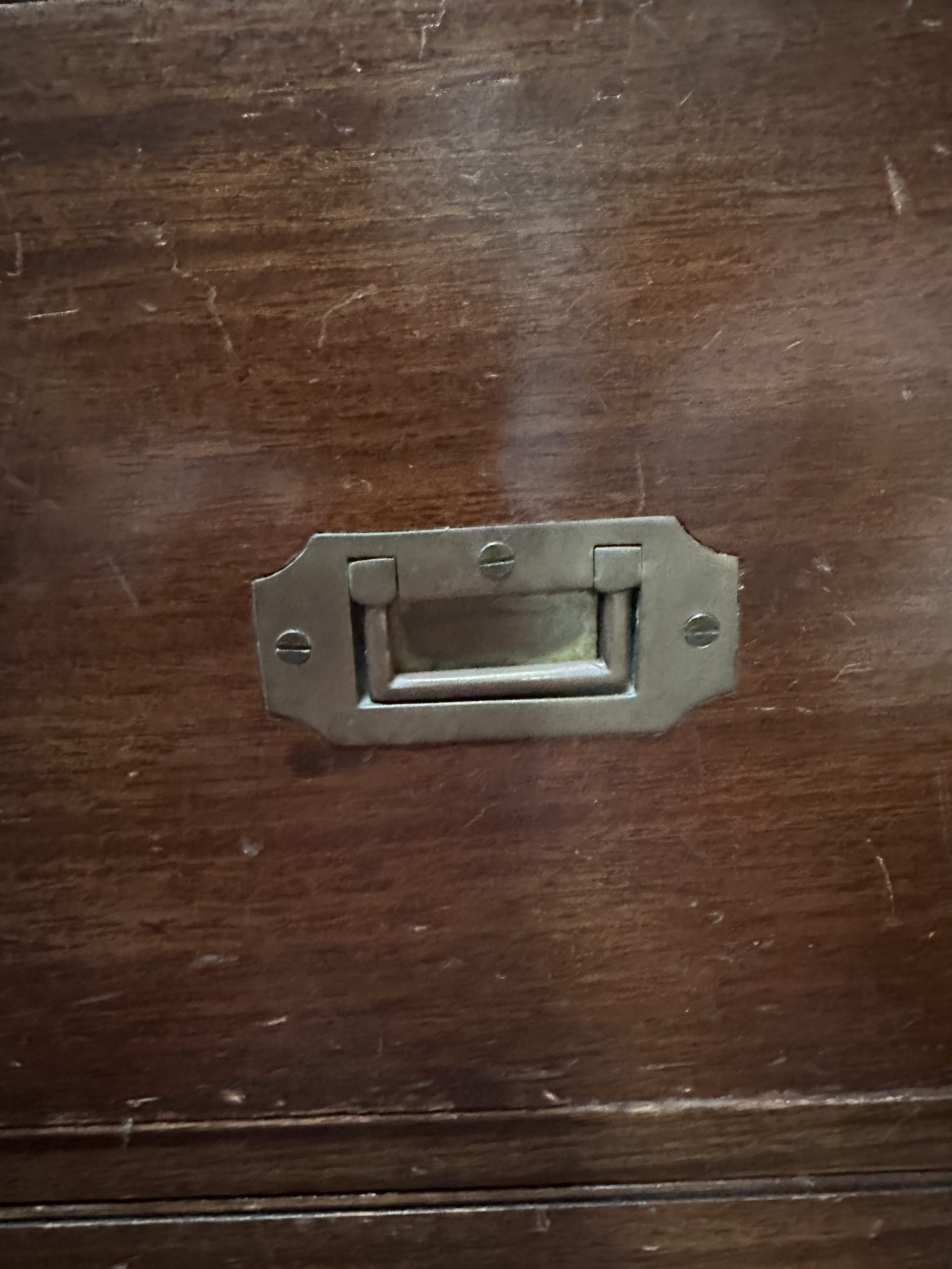 Brass corners and inserted handles give it a bit of an ‘edge’.