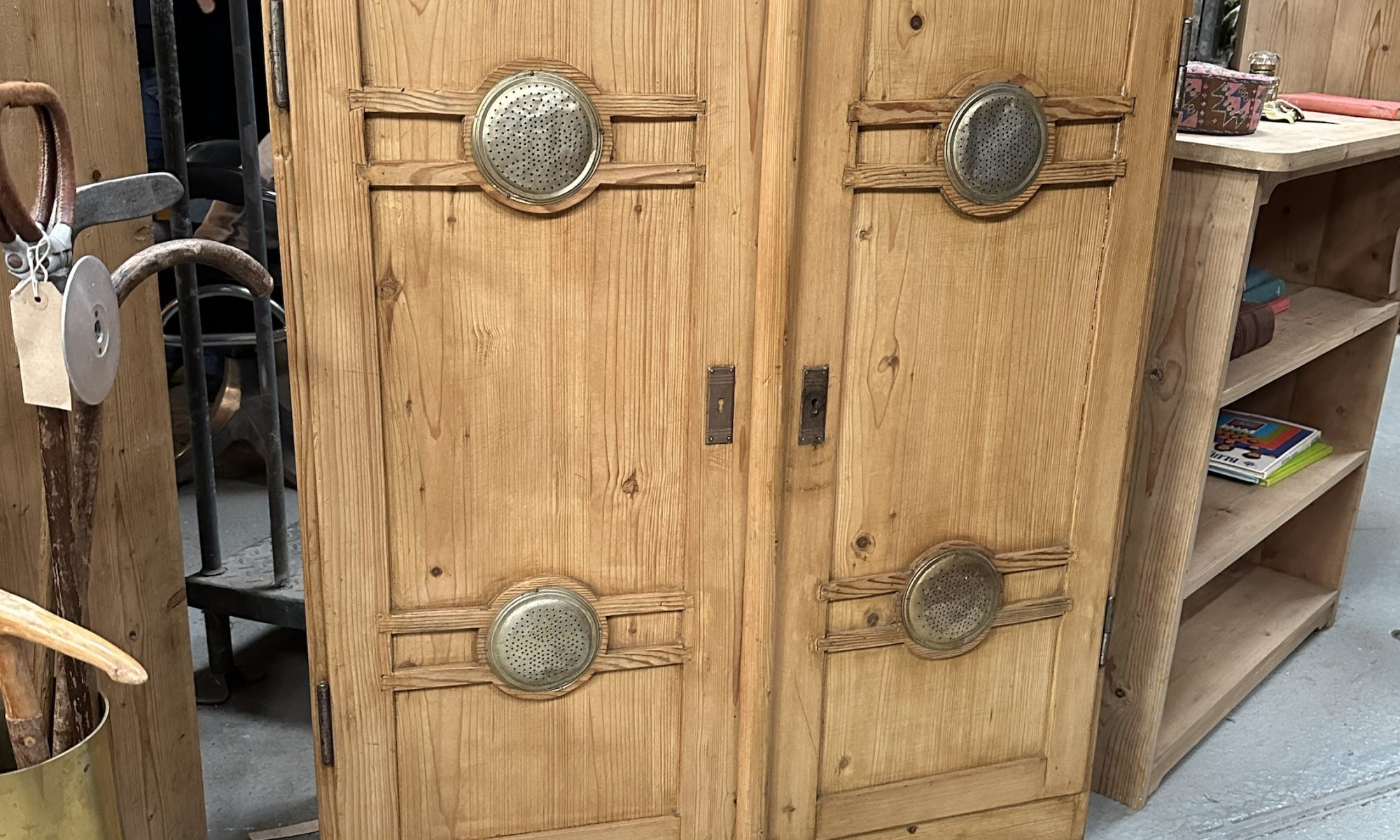 Two door cupboard with ventilation for foodstuffs. Edging around the top for stacking your range of breakfast cereals!