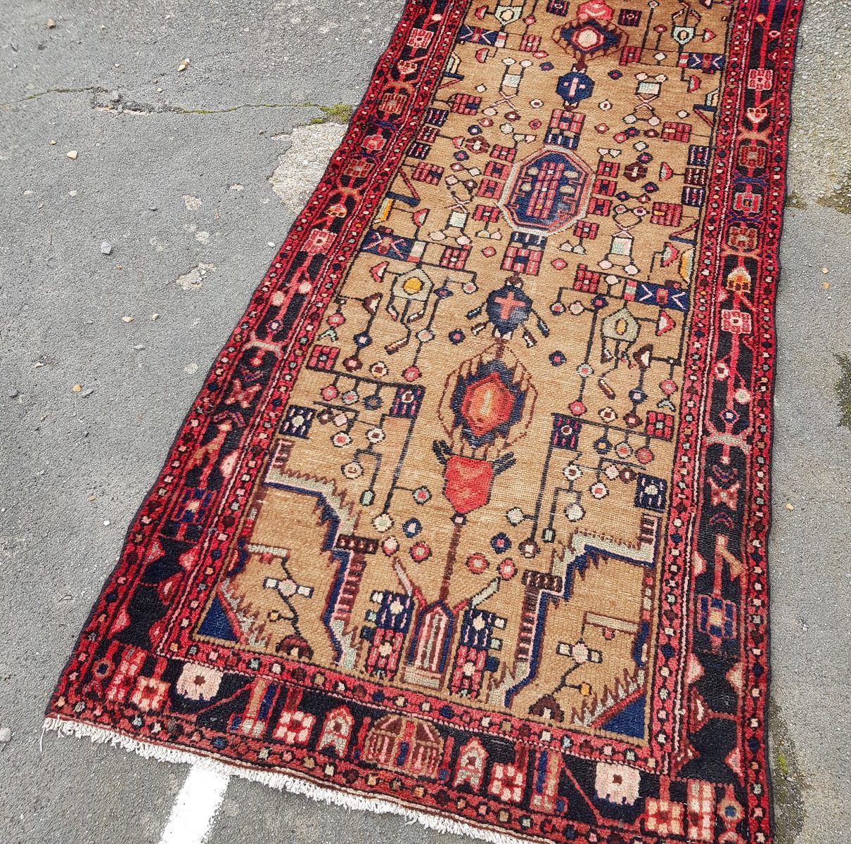 Red and Fawn rug made in Iran, some wear but still good to go!