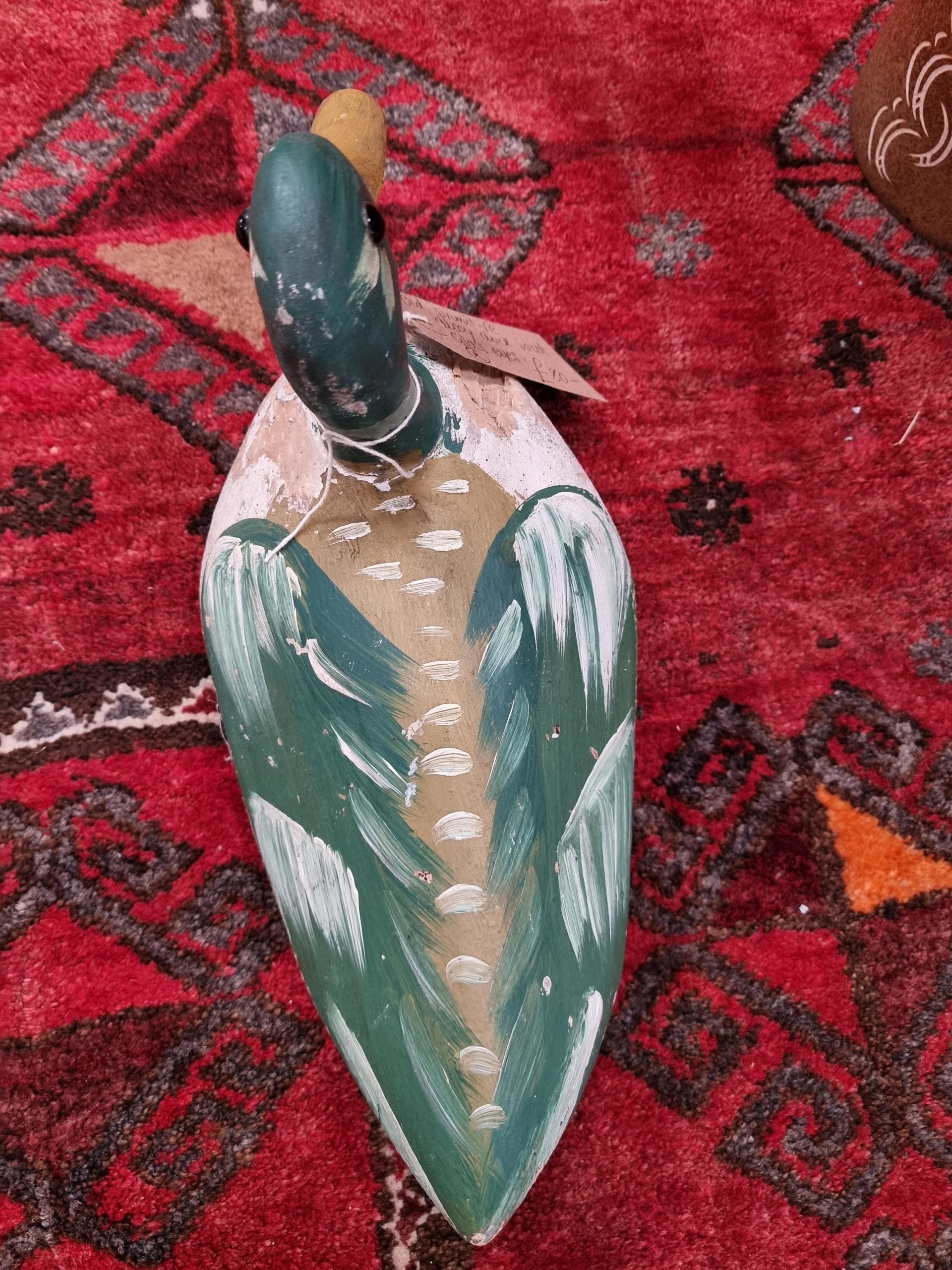 An old Primitive hand painted Decoy Duck with glass eyes