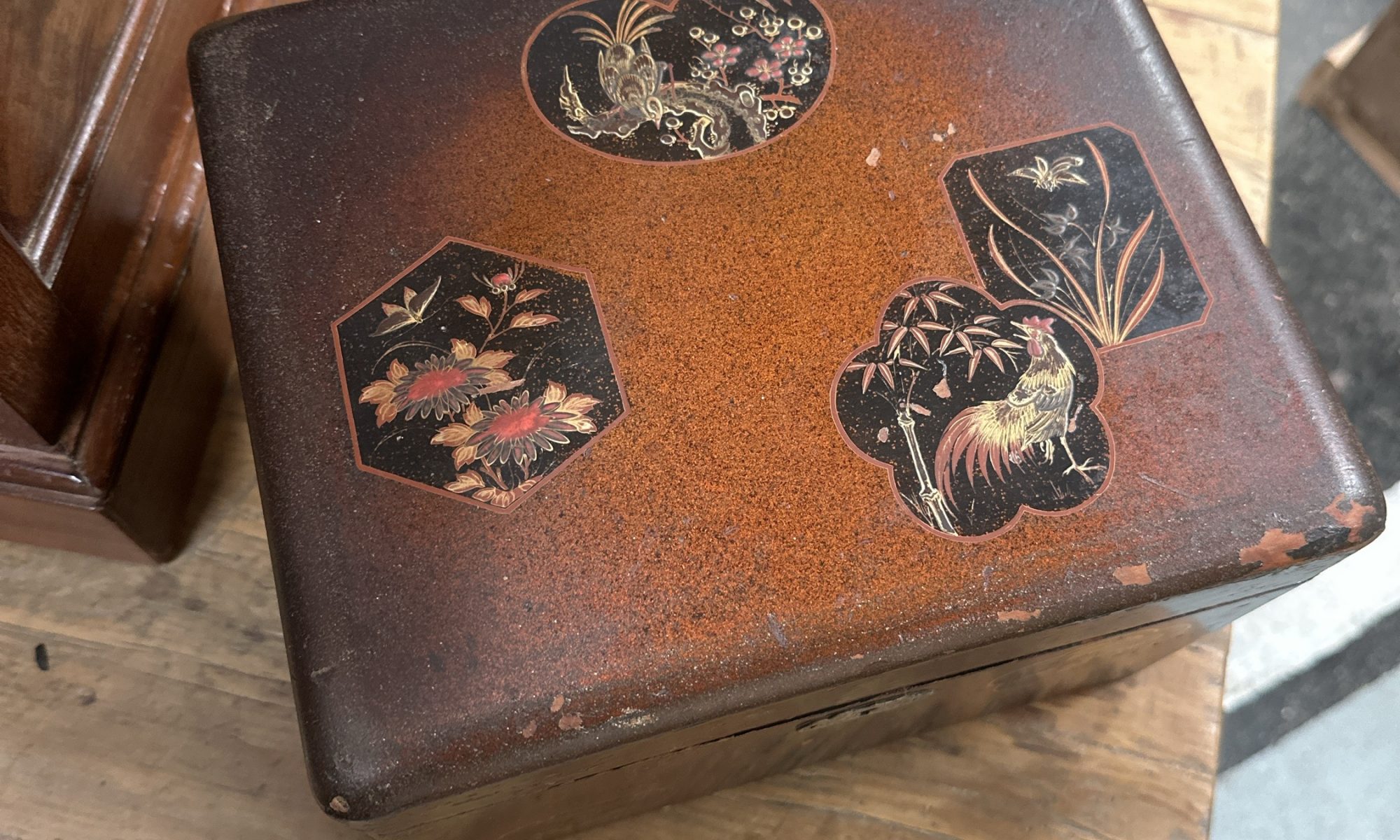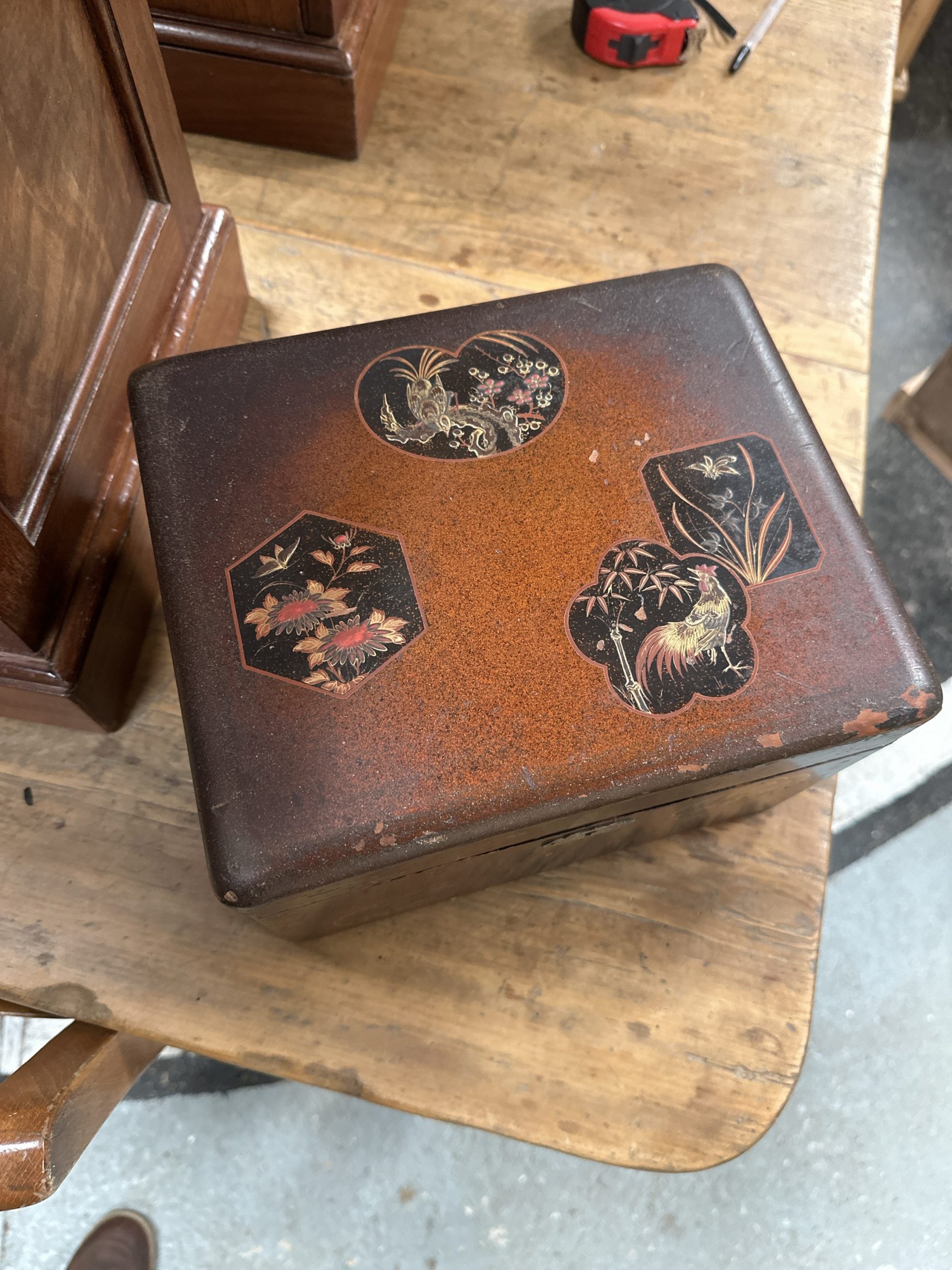 Decorated on all sides and lid with flowers, birds and butterflies.