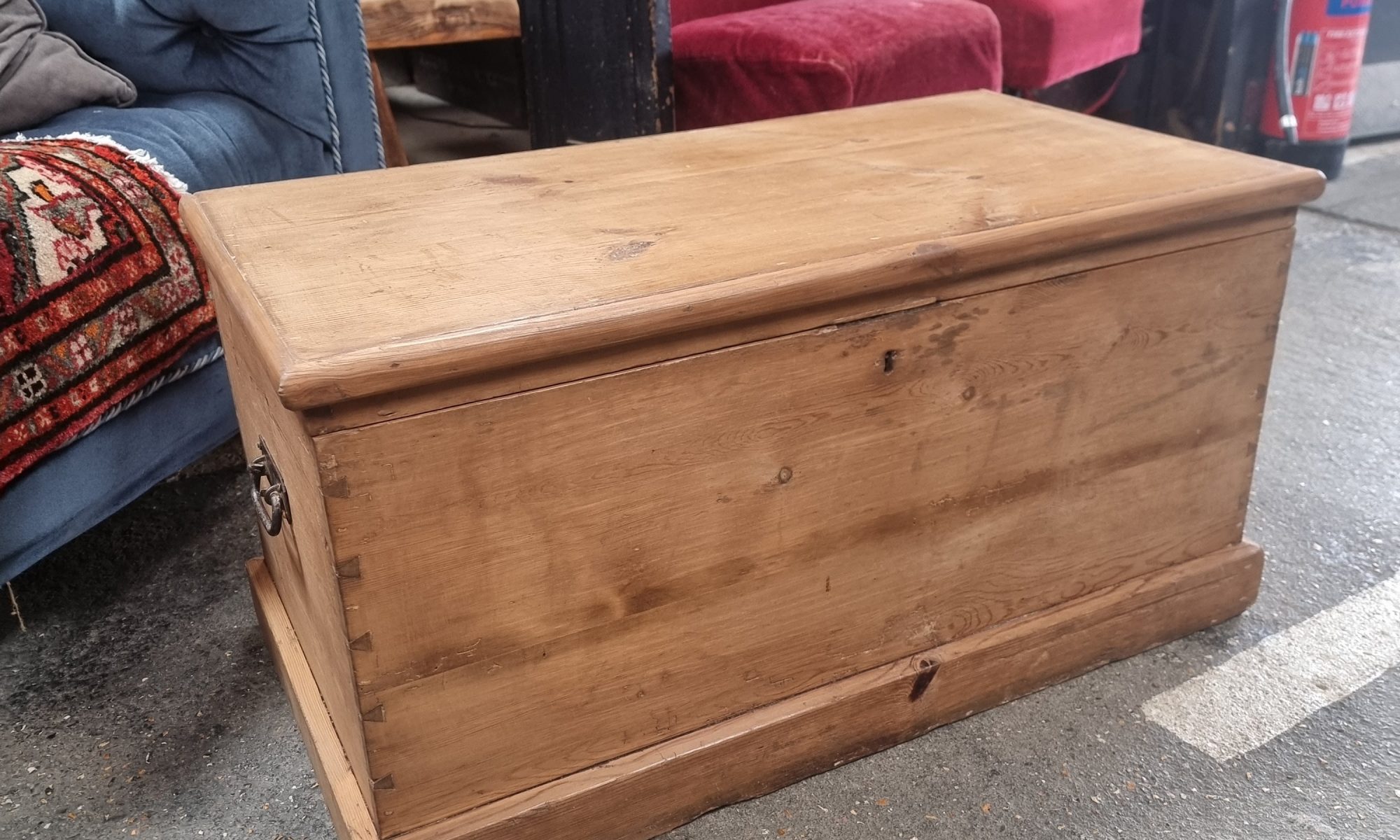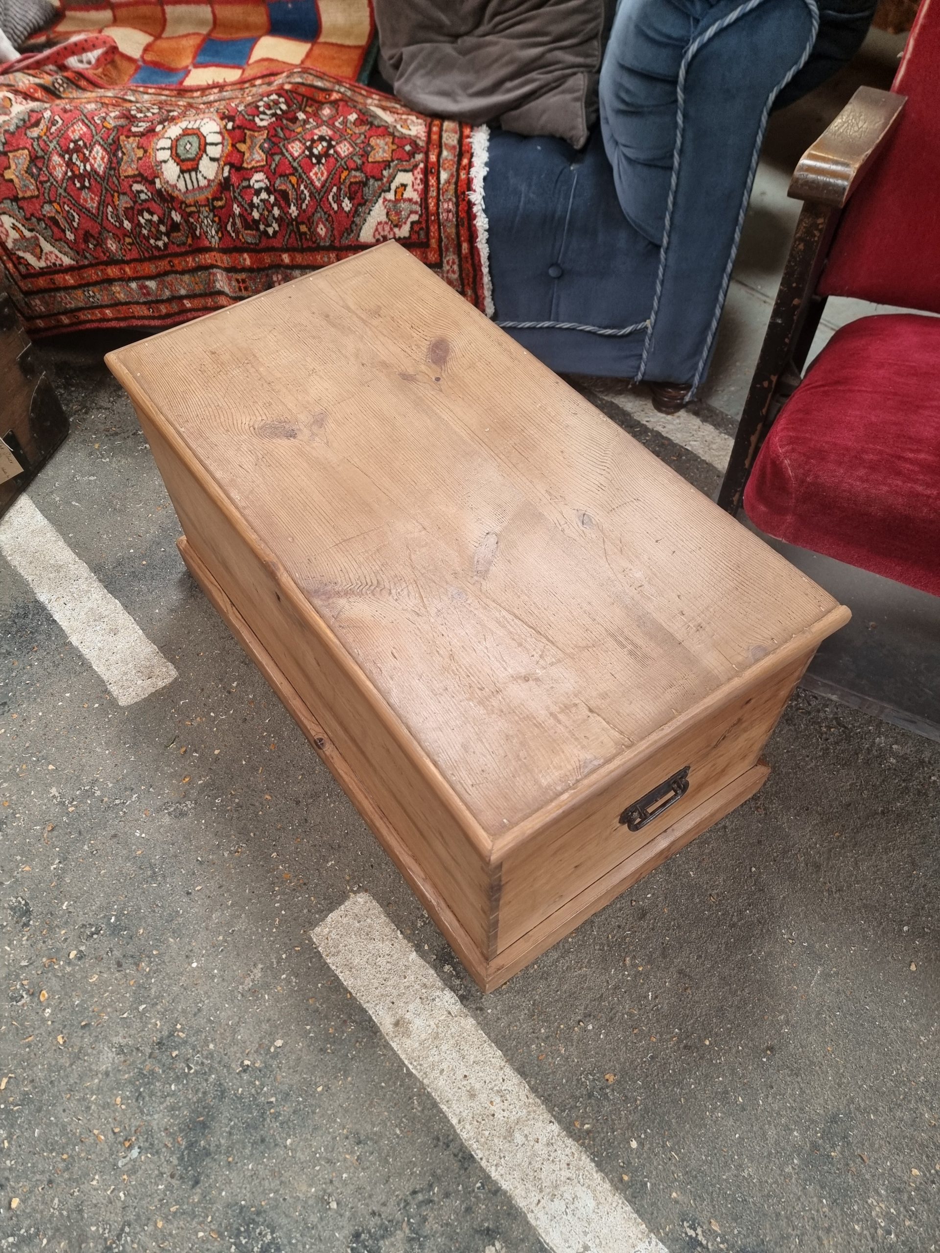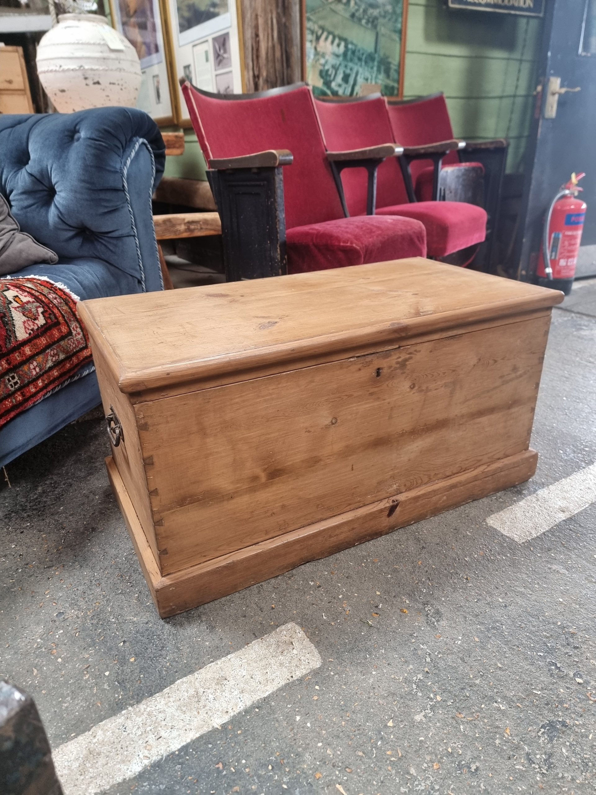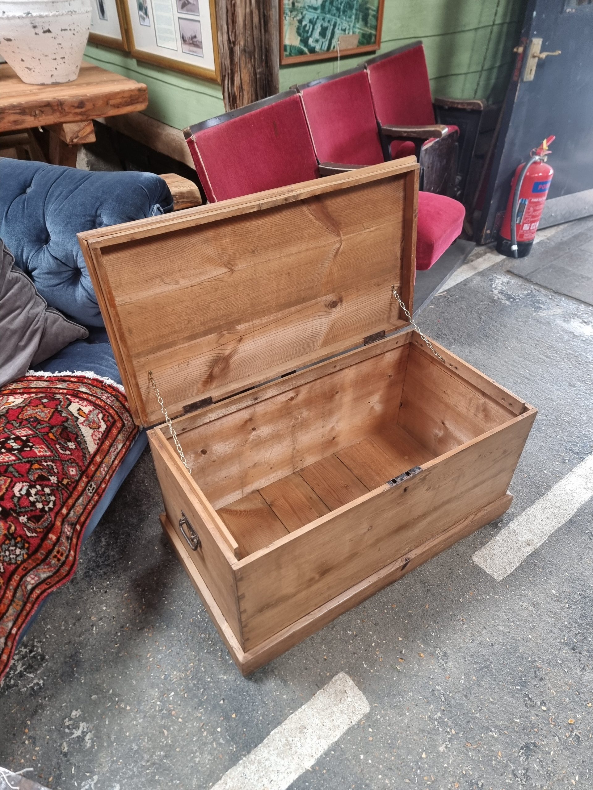 Victorian pine box, dovetailed joints and carrying handles. 860mm x 460mm x 440mm high £235 R403062