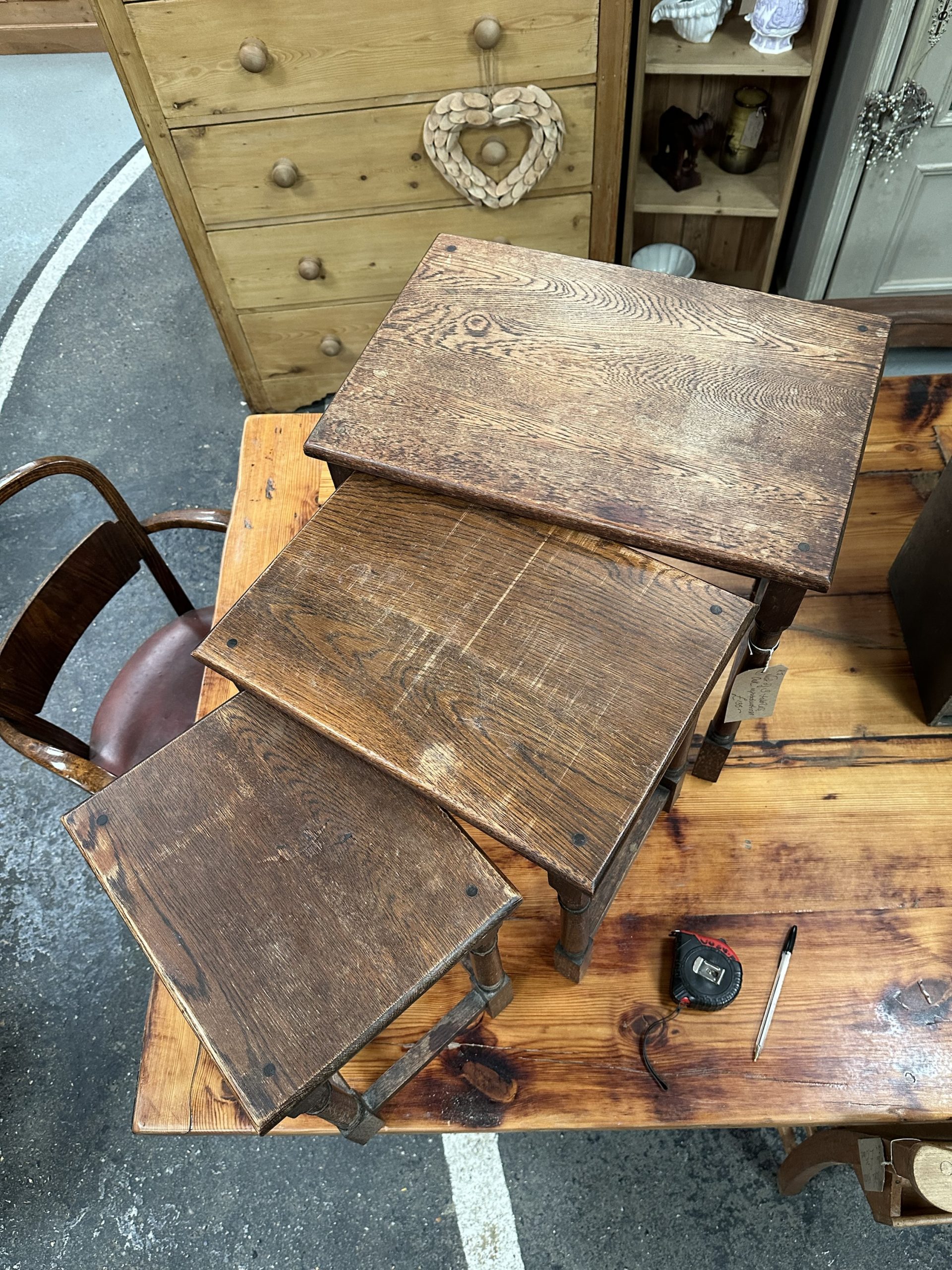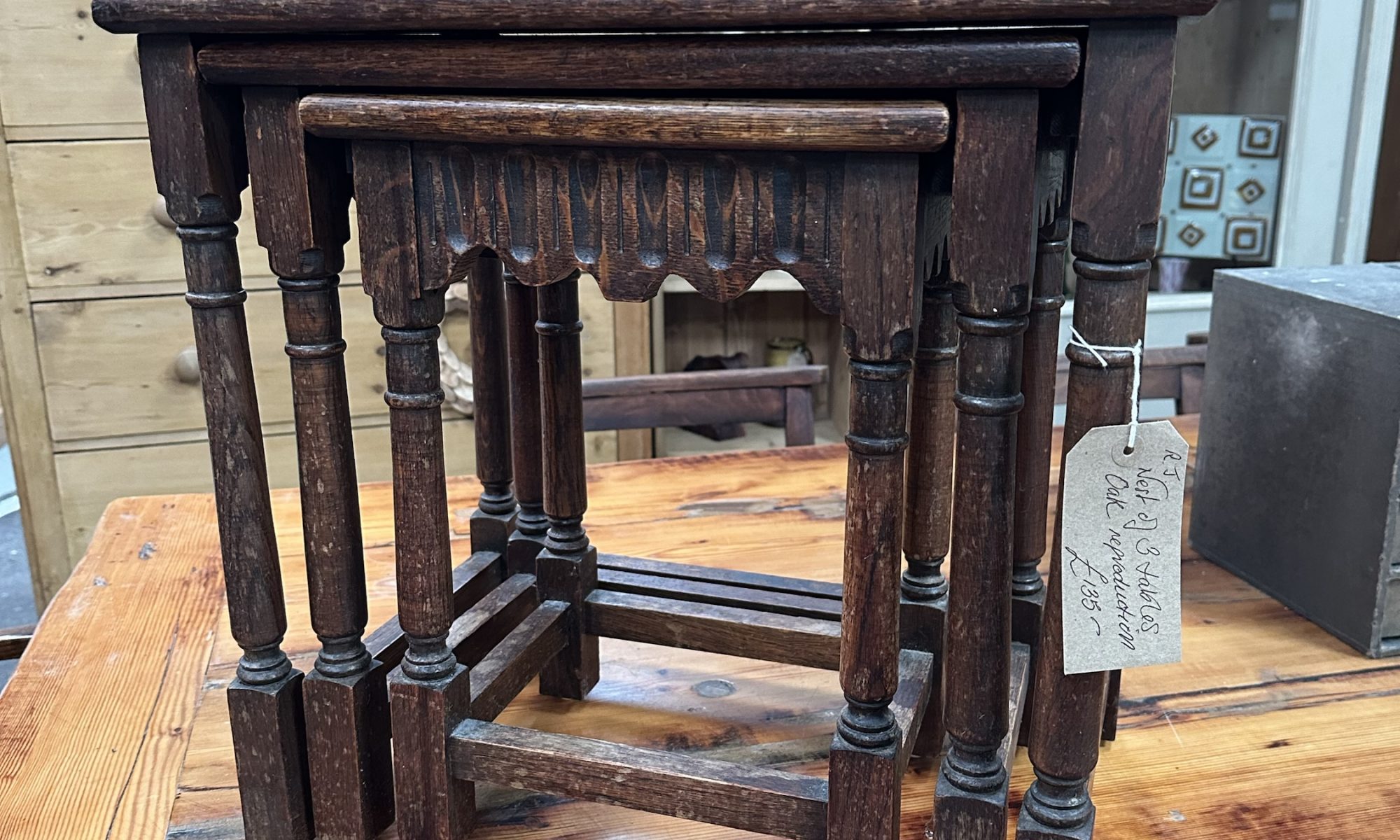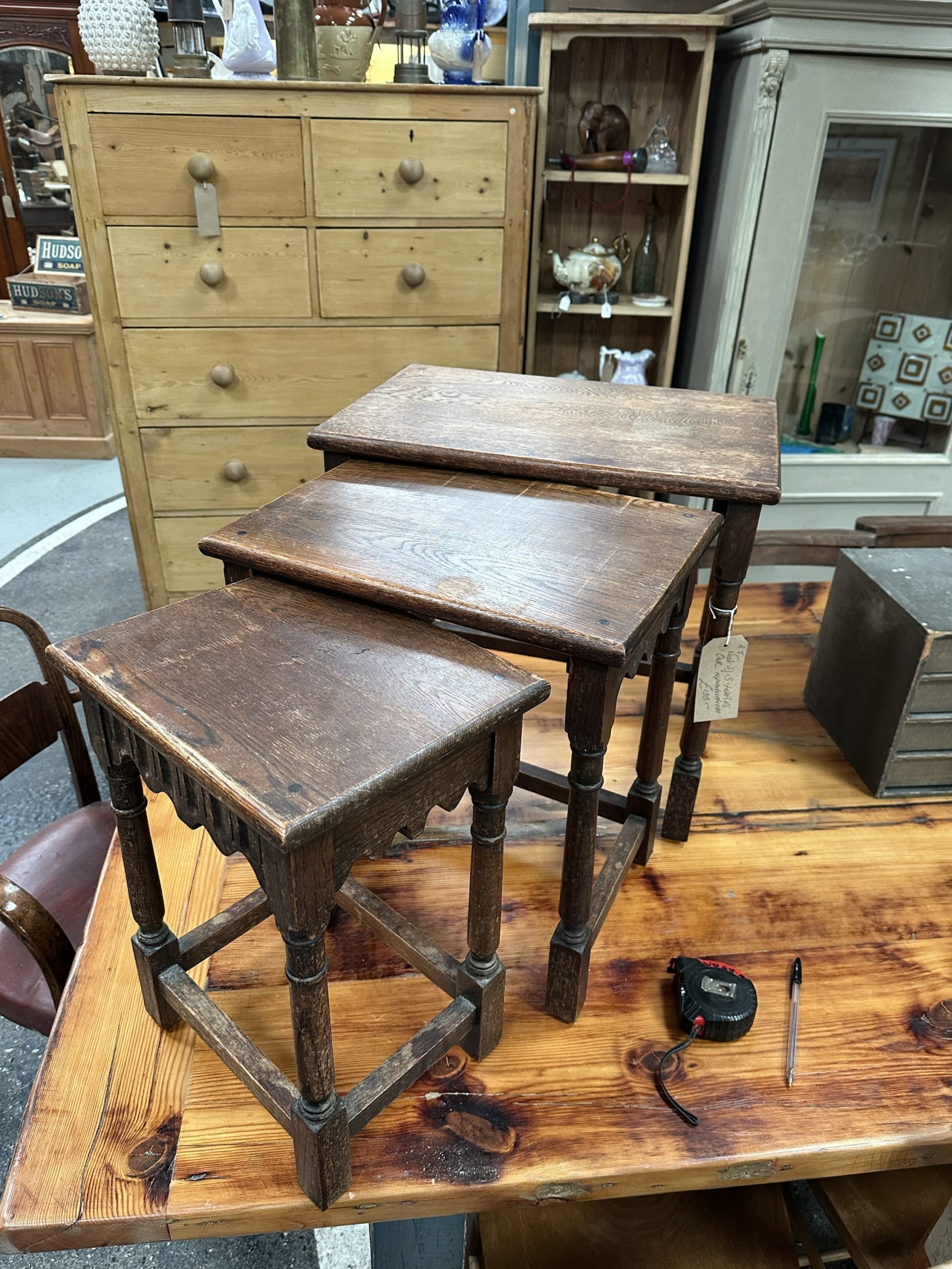 Nest of three oak reproduction tables.
