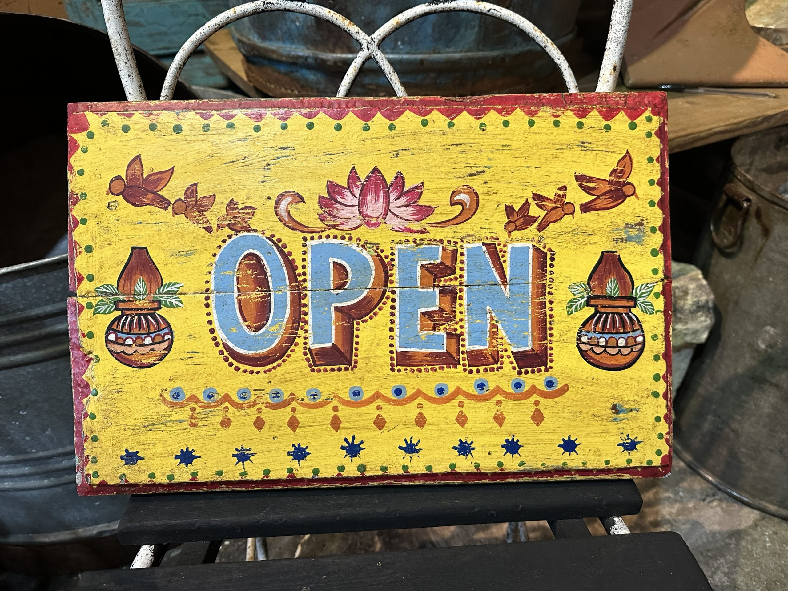 Hand painted’Open’ sign.