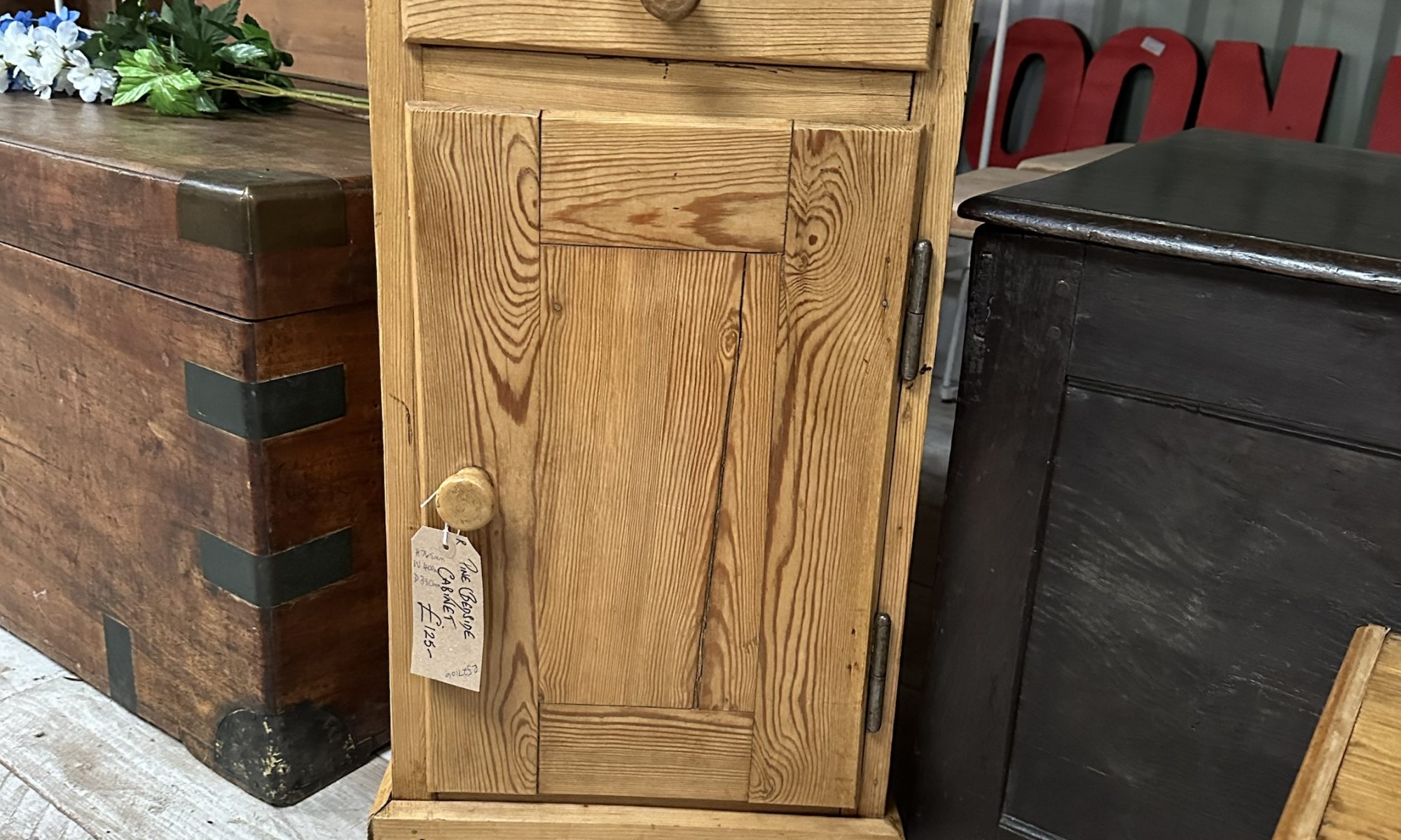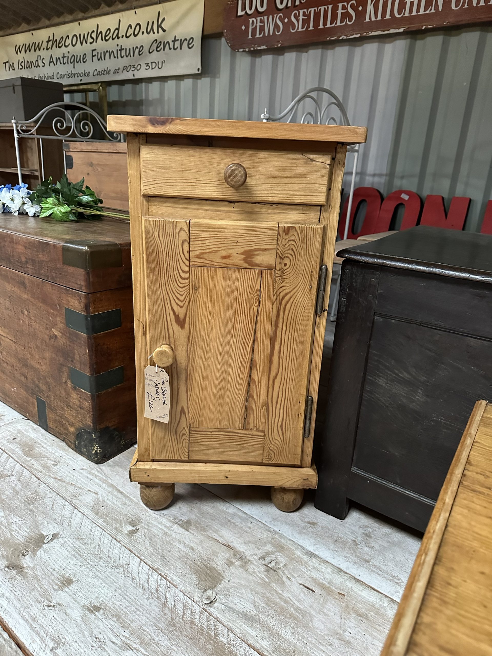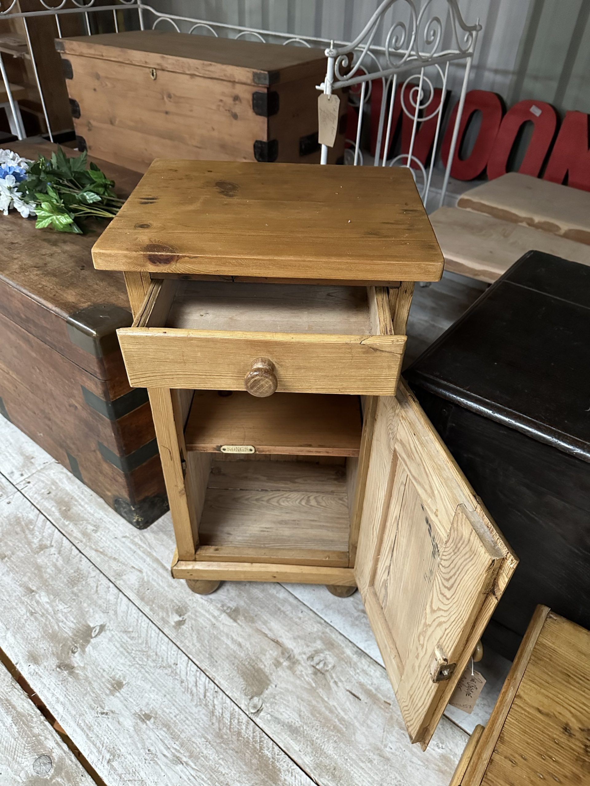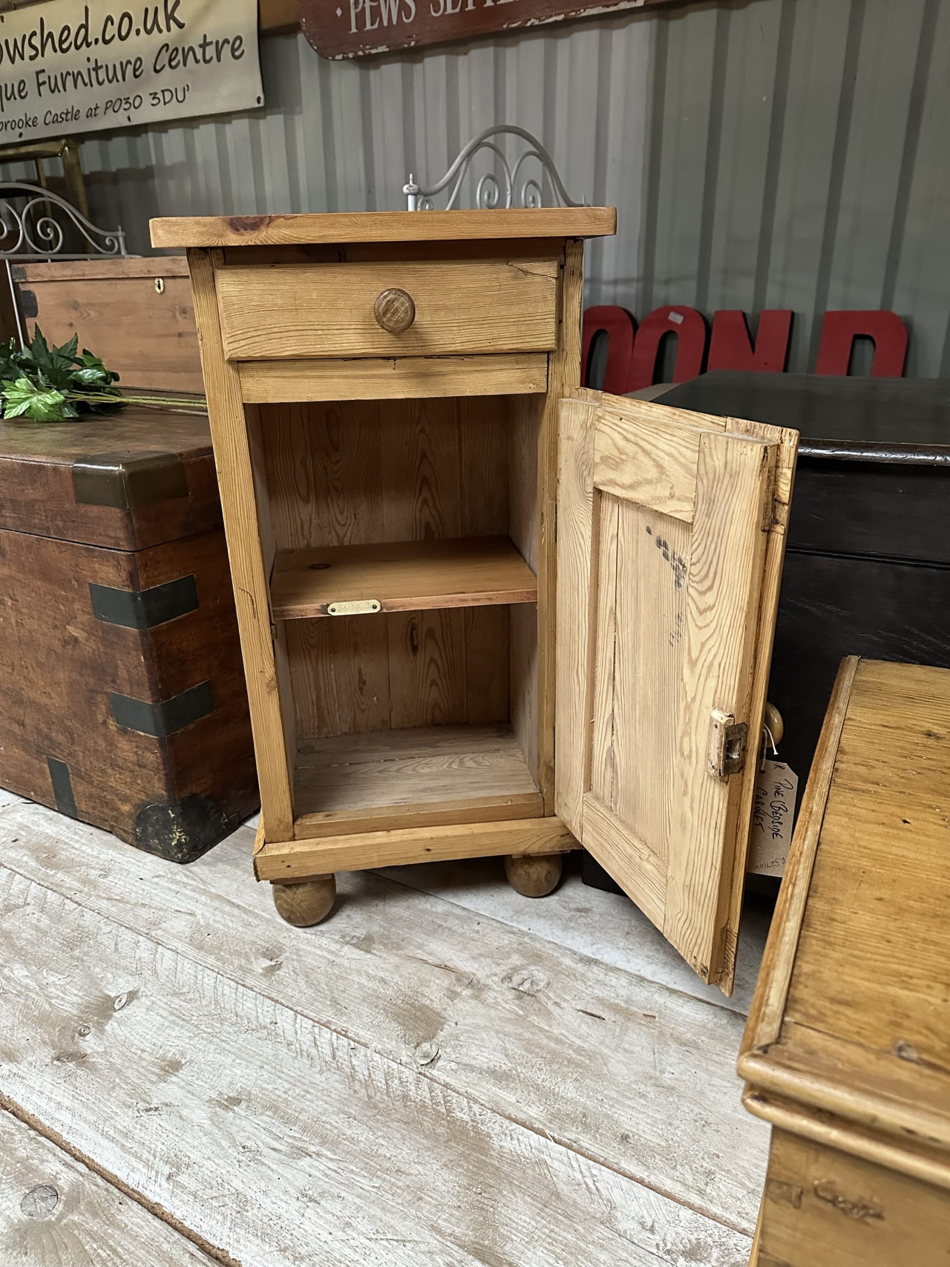 Pine bedside cabinet with drawer, shelf and cheeky bun feet!