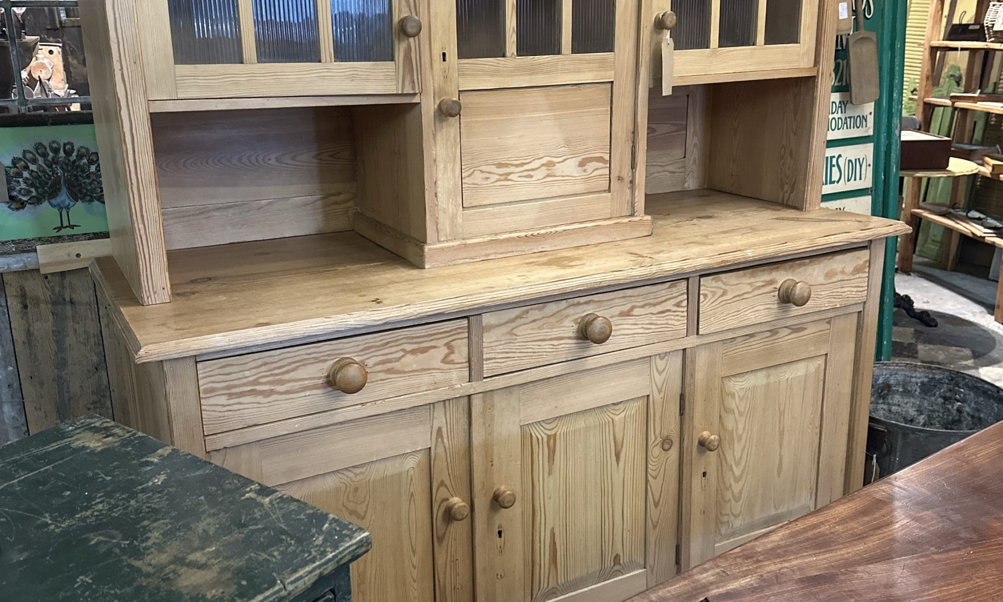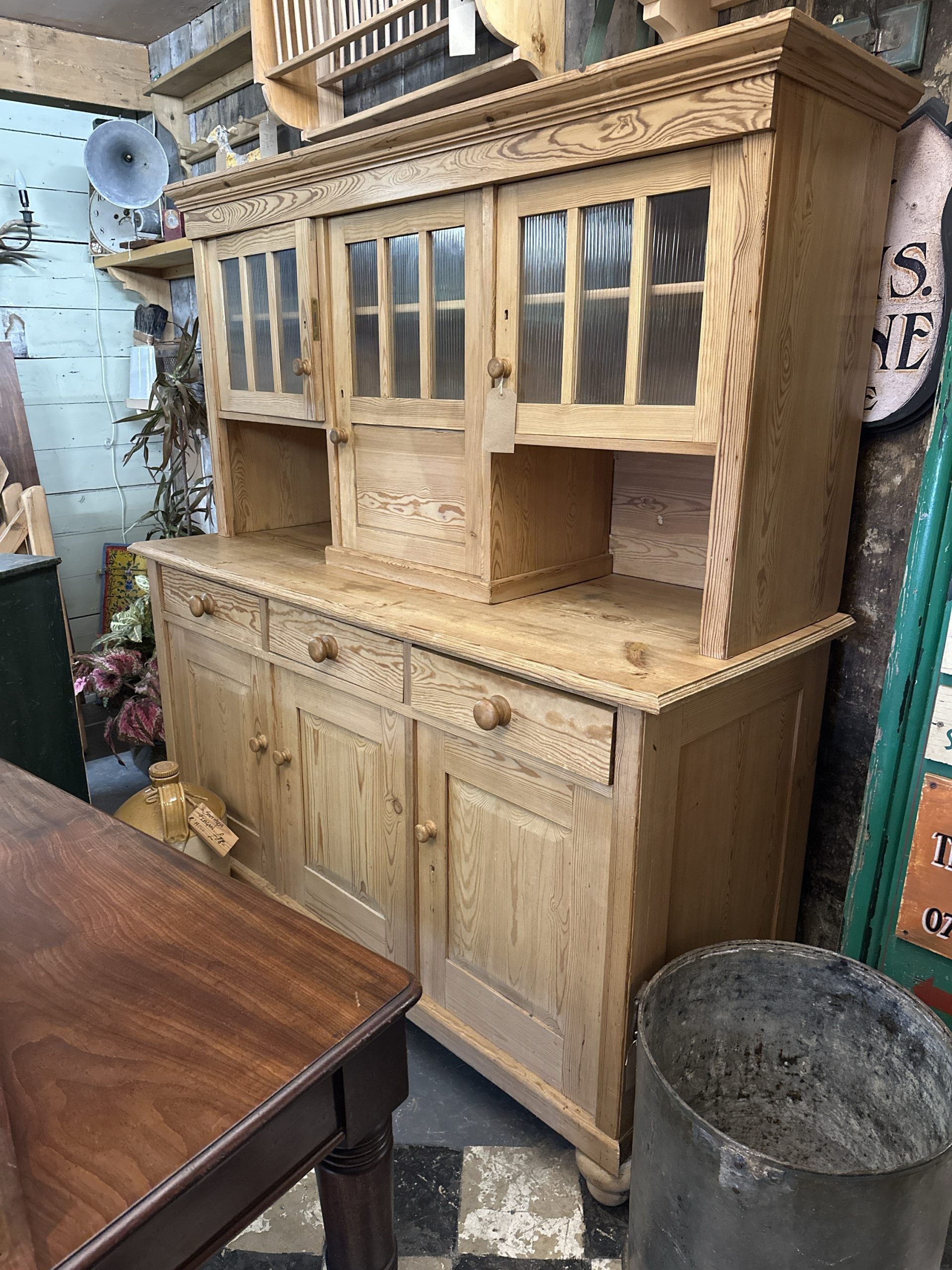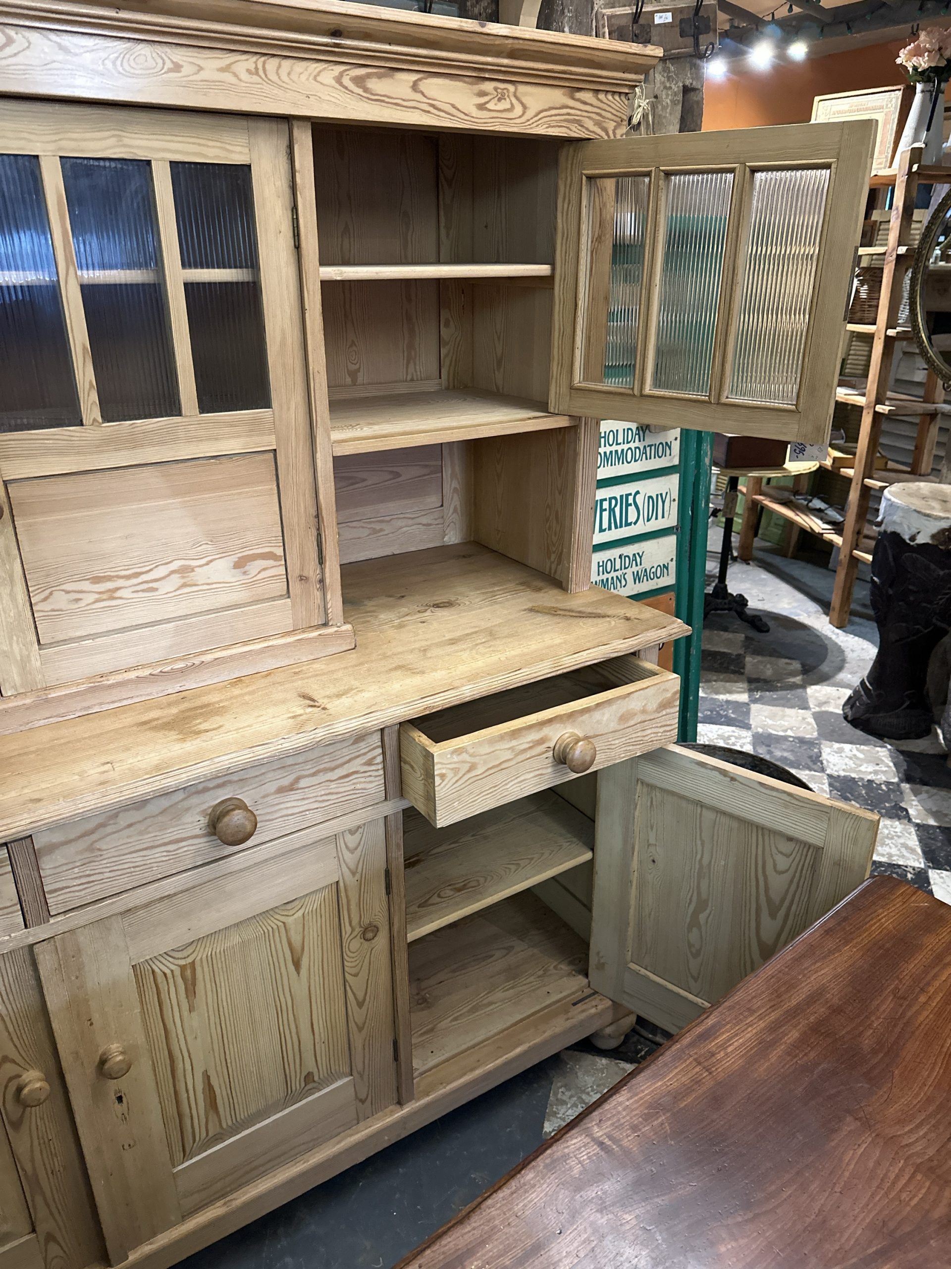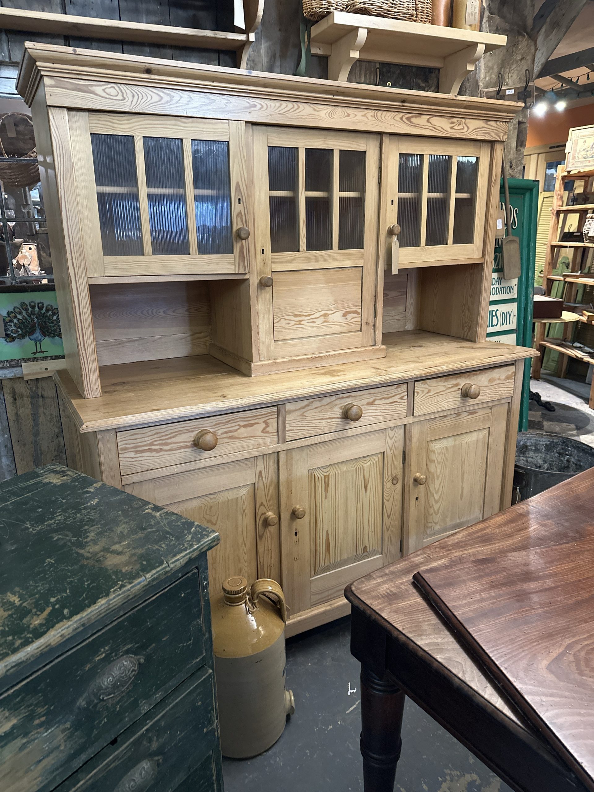 Pine dresser with glazed doors, three drawers and three cupboards under. So much storage!