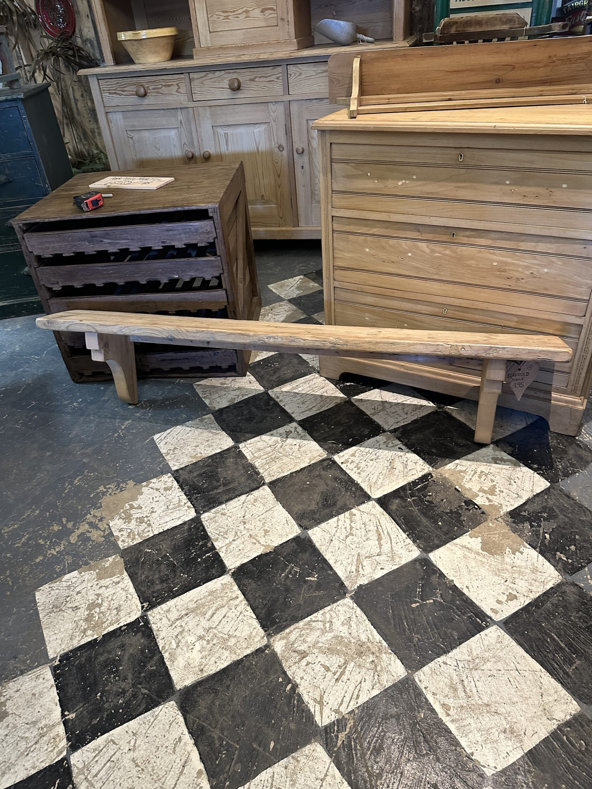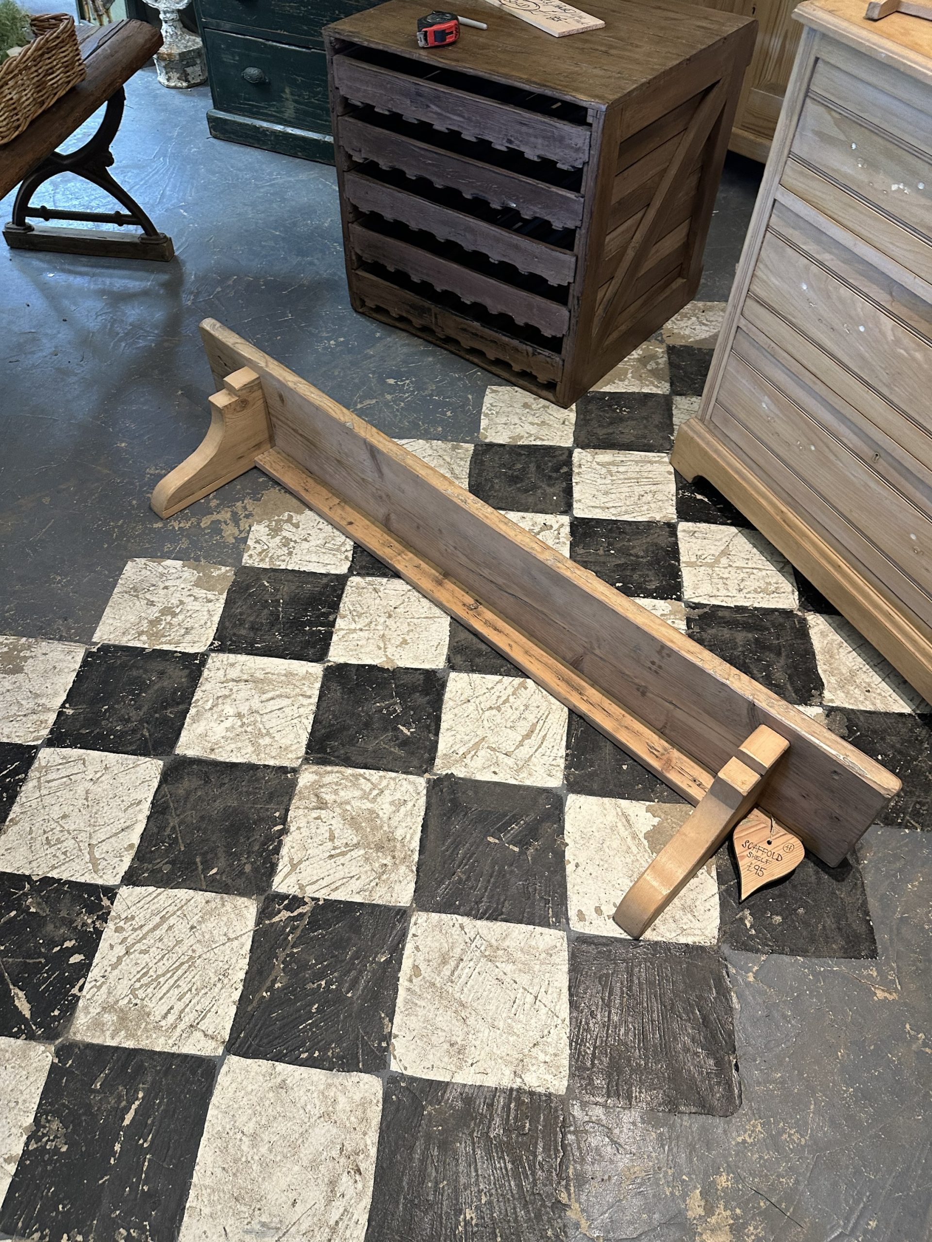 Scaffold board shelf.
