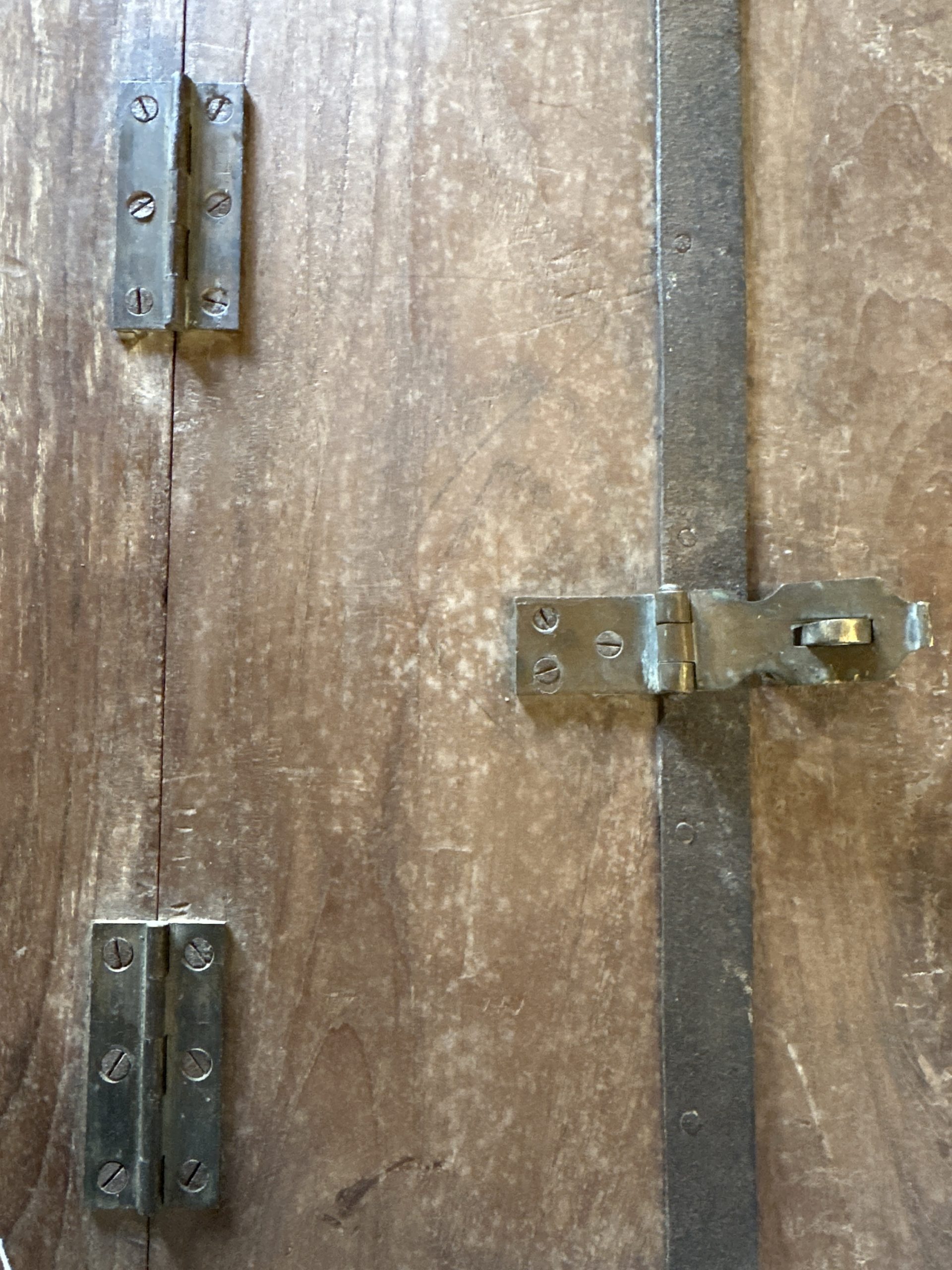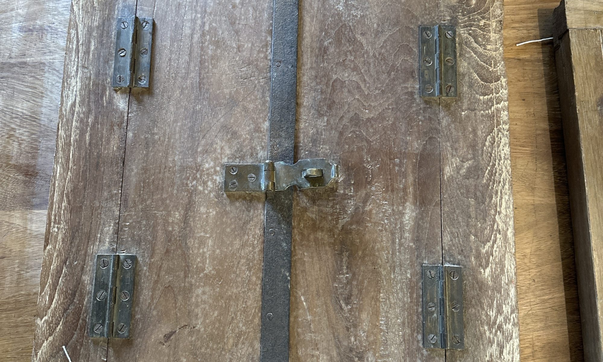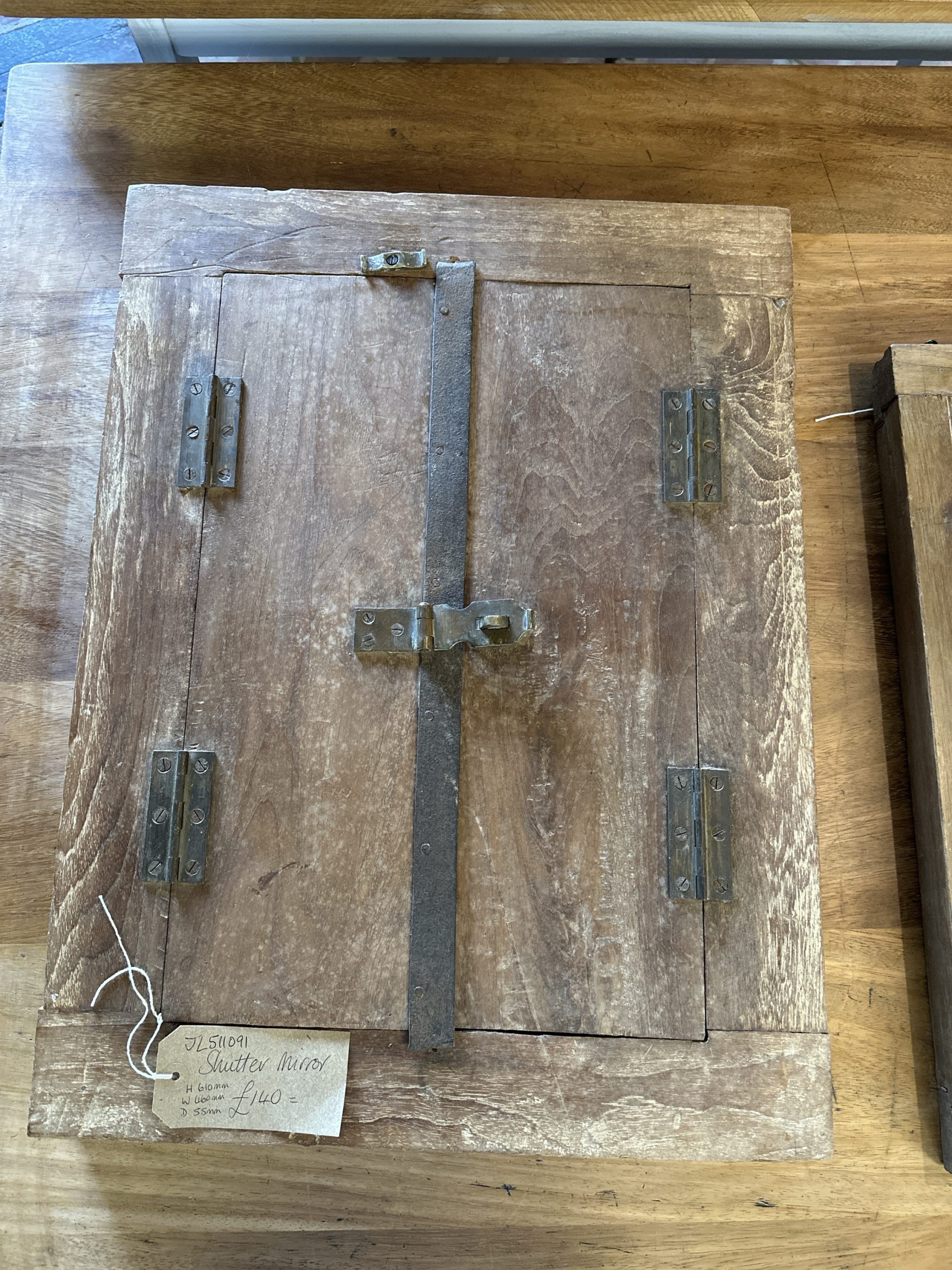 Heavy wood shutter mirror.