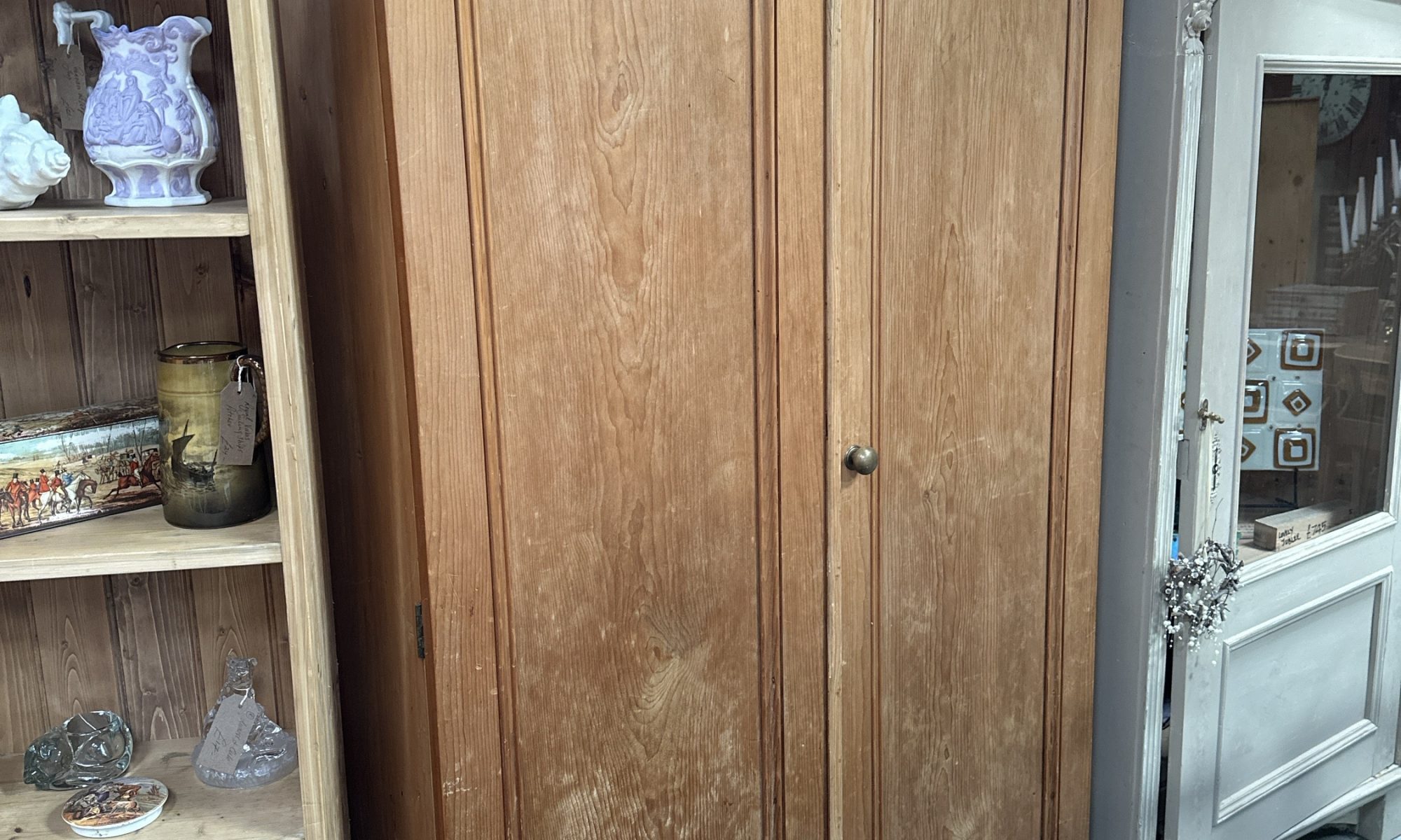 Lovely big Victorian pine wardrobe with double hangers and shelf above.