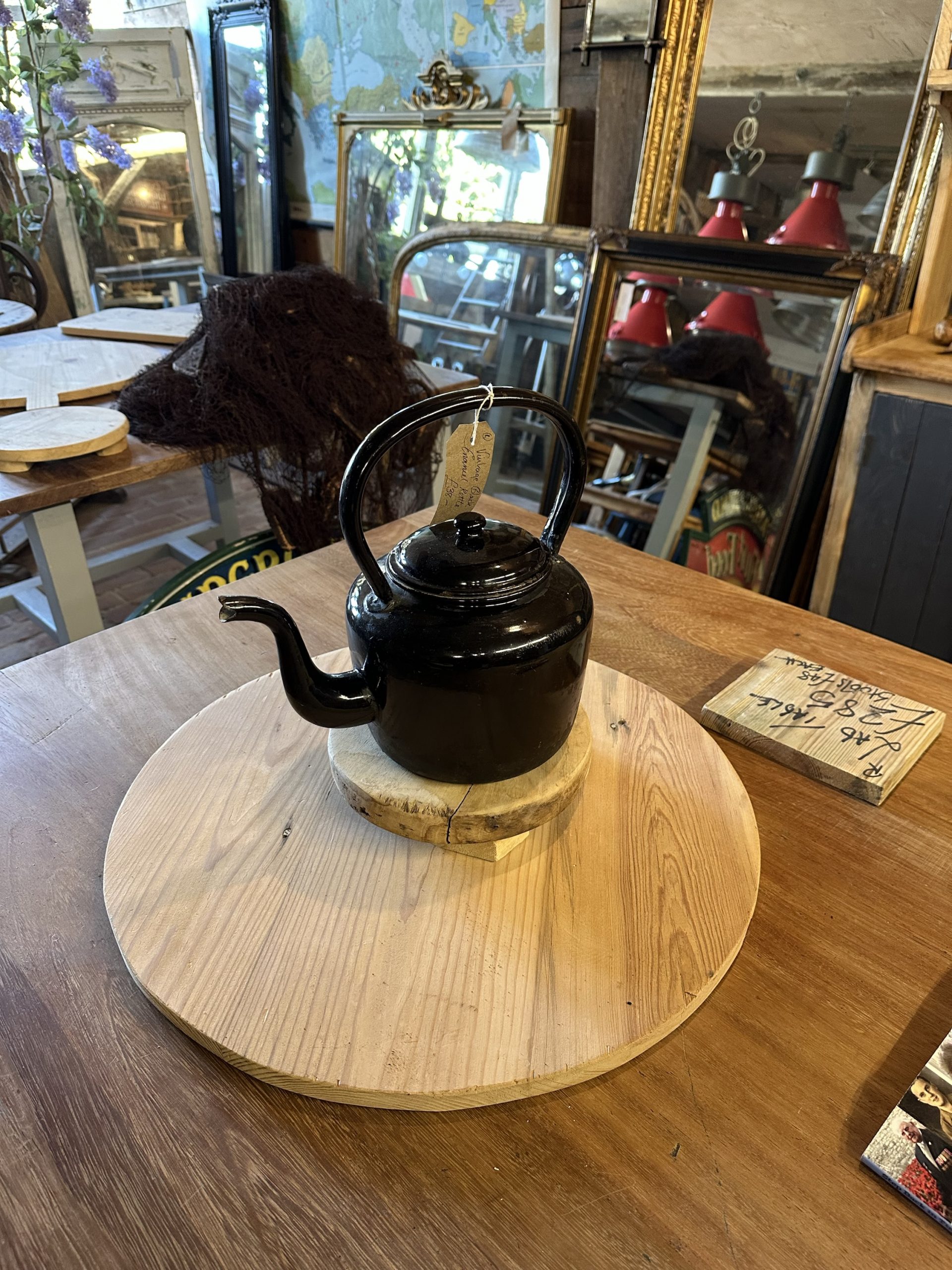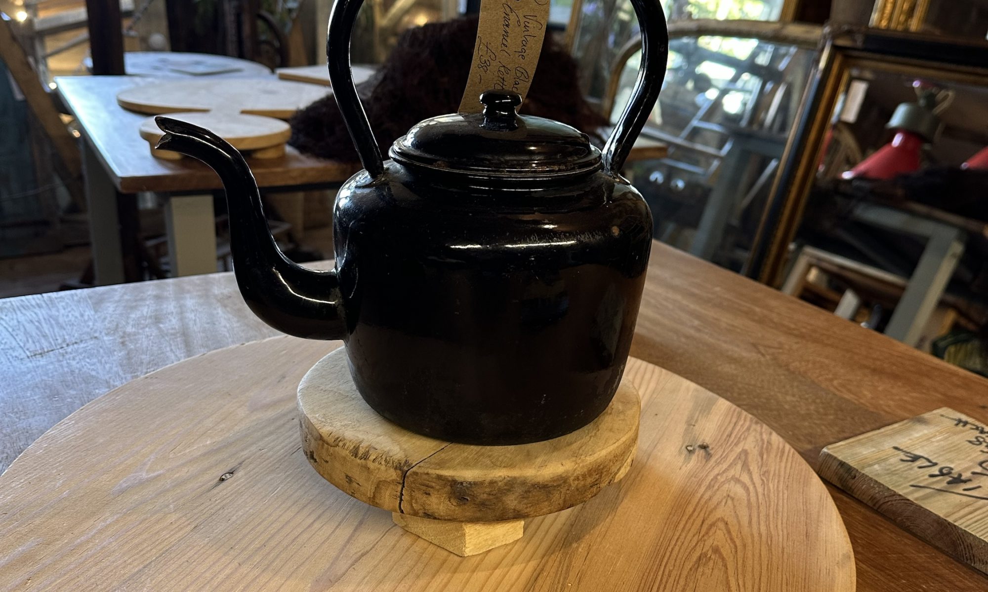 Vintage black enamel kettle