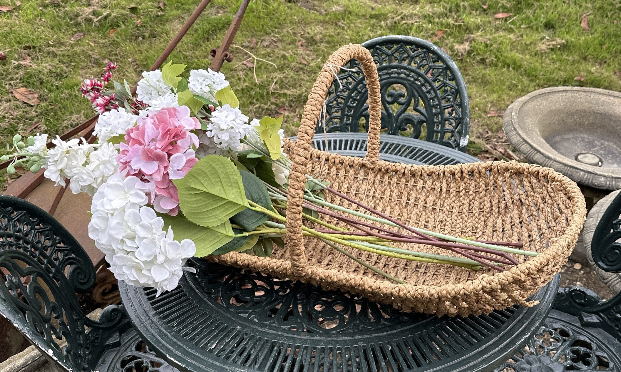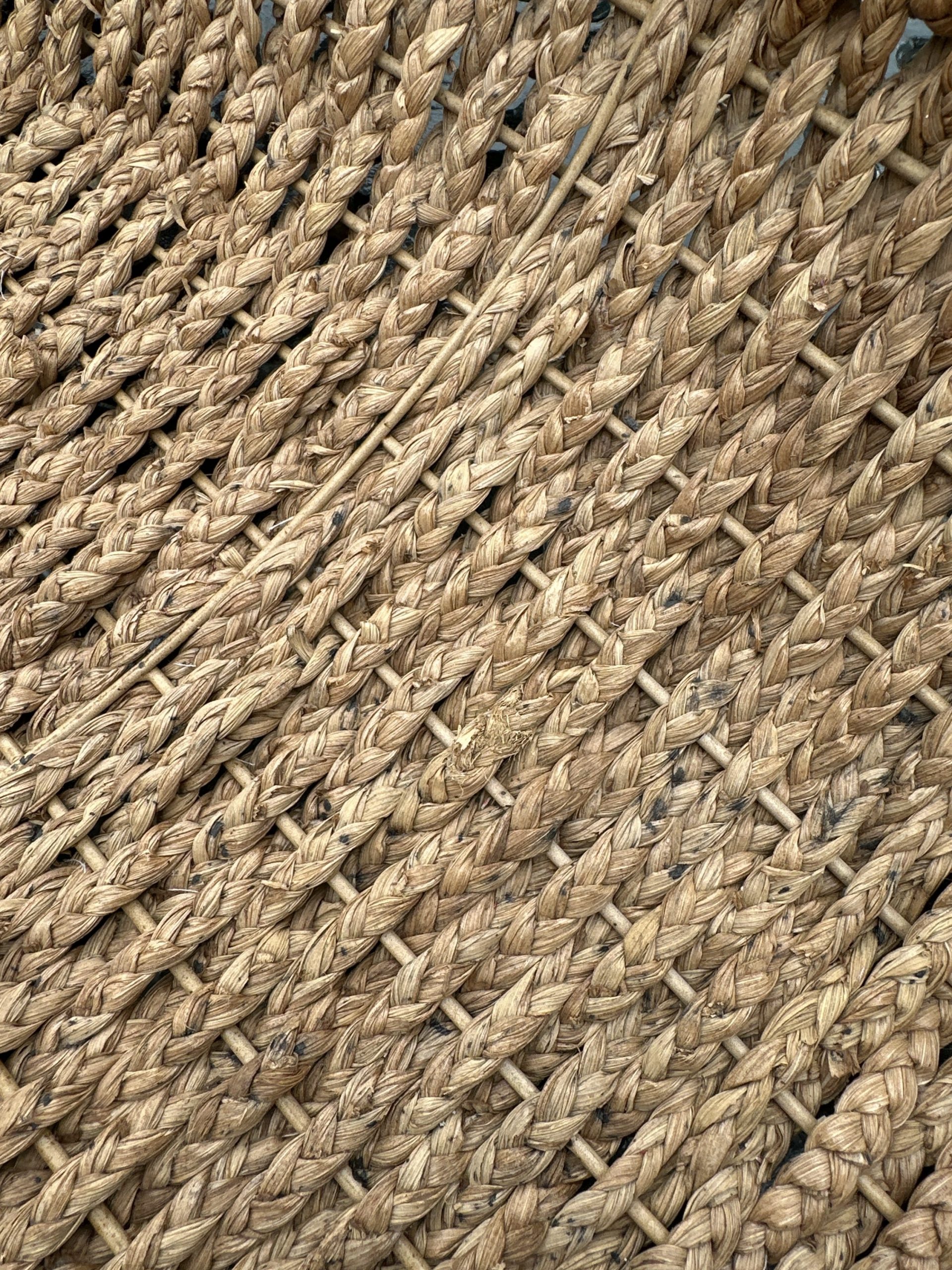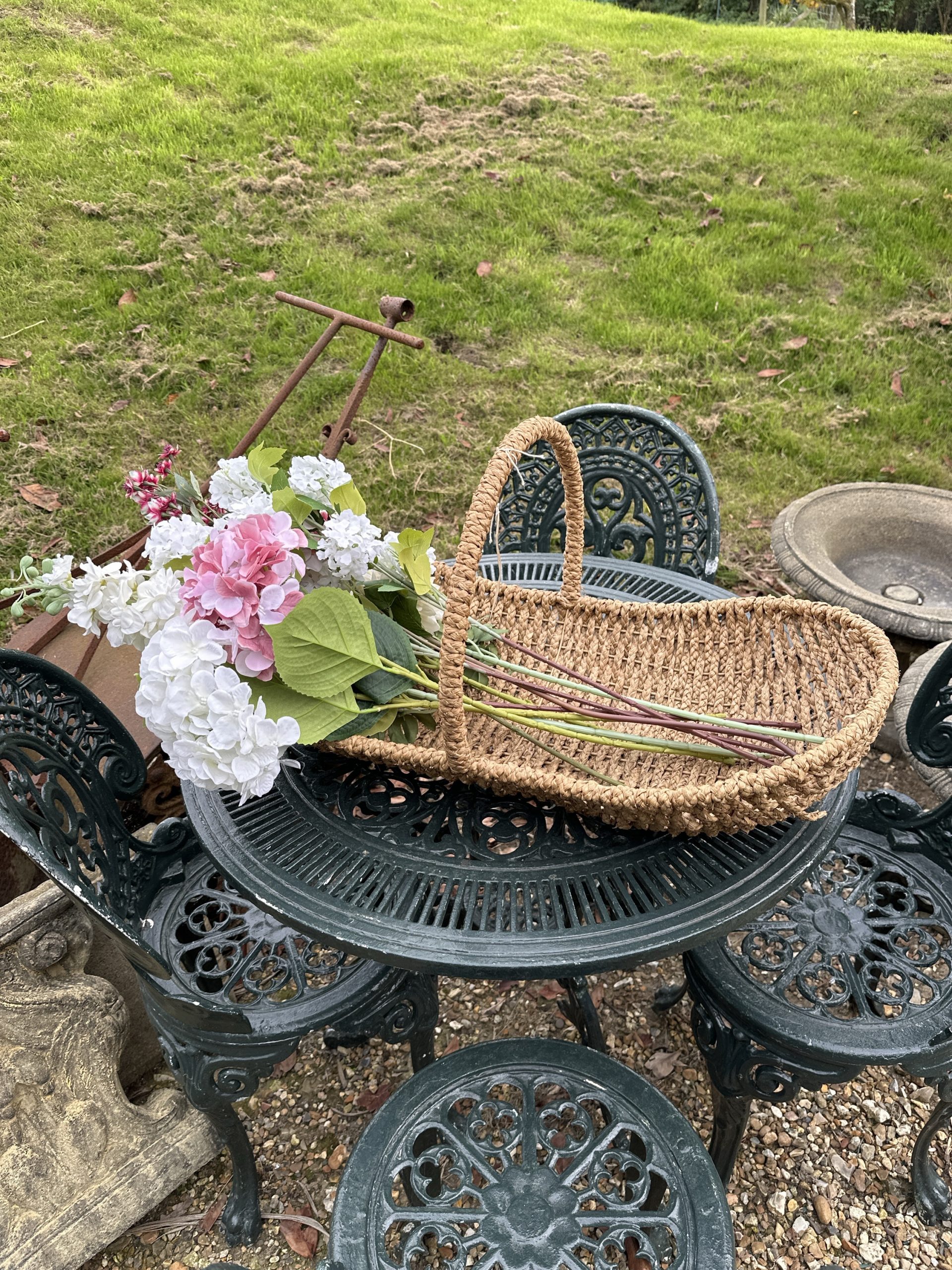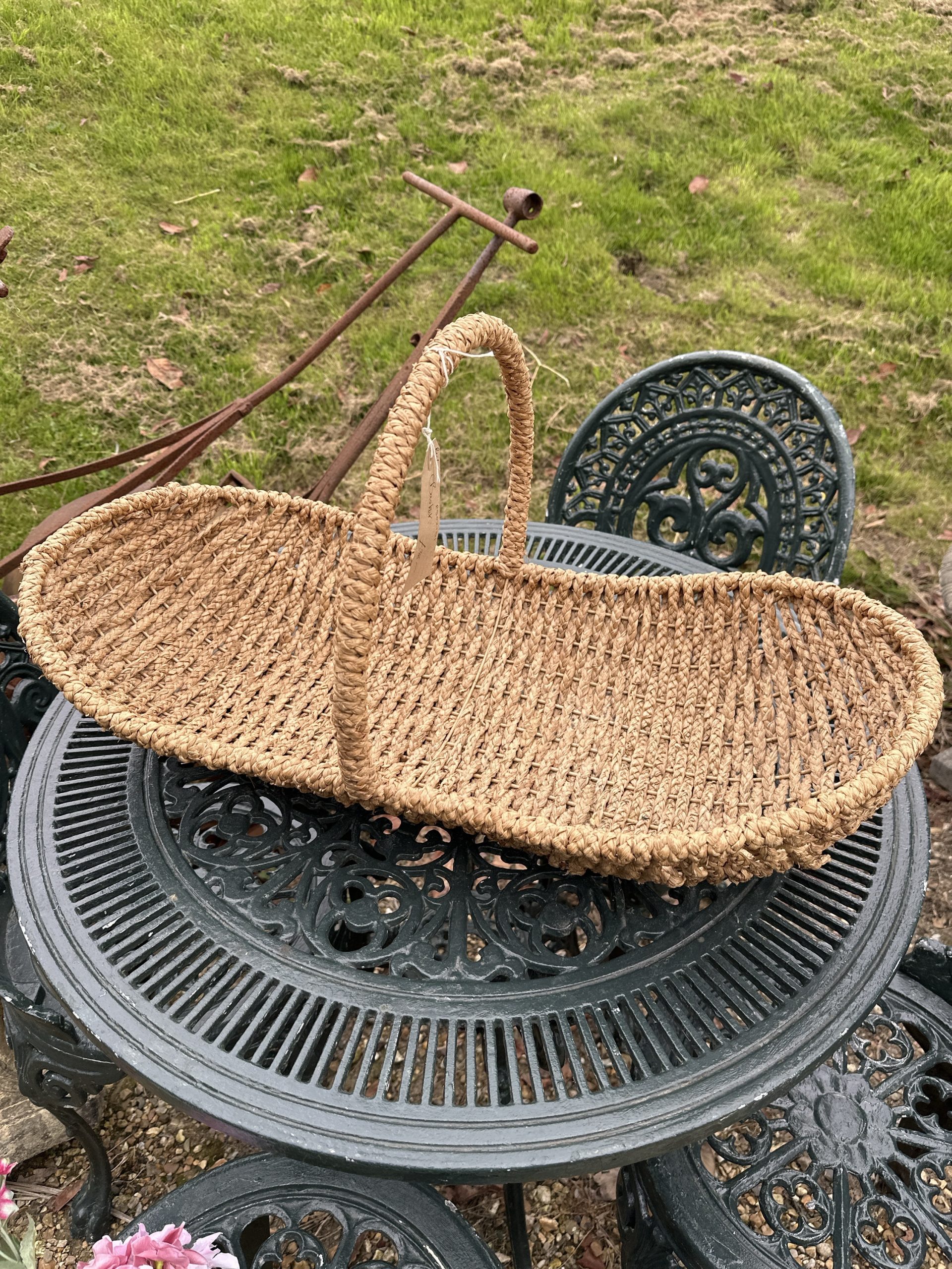 Large plaited basket/trug. Plaits woven onto a wooden frame.